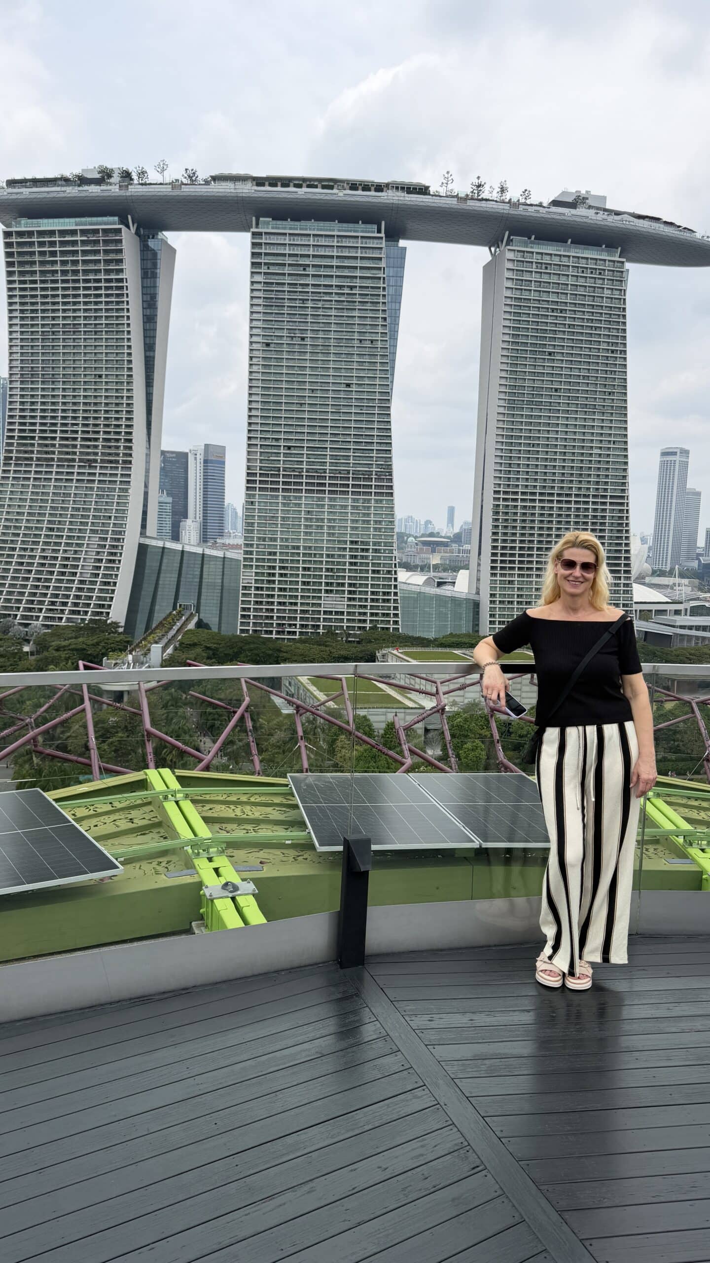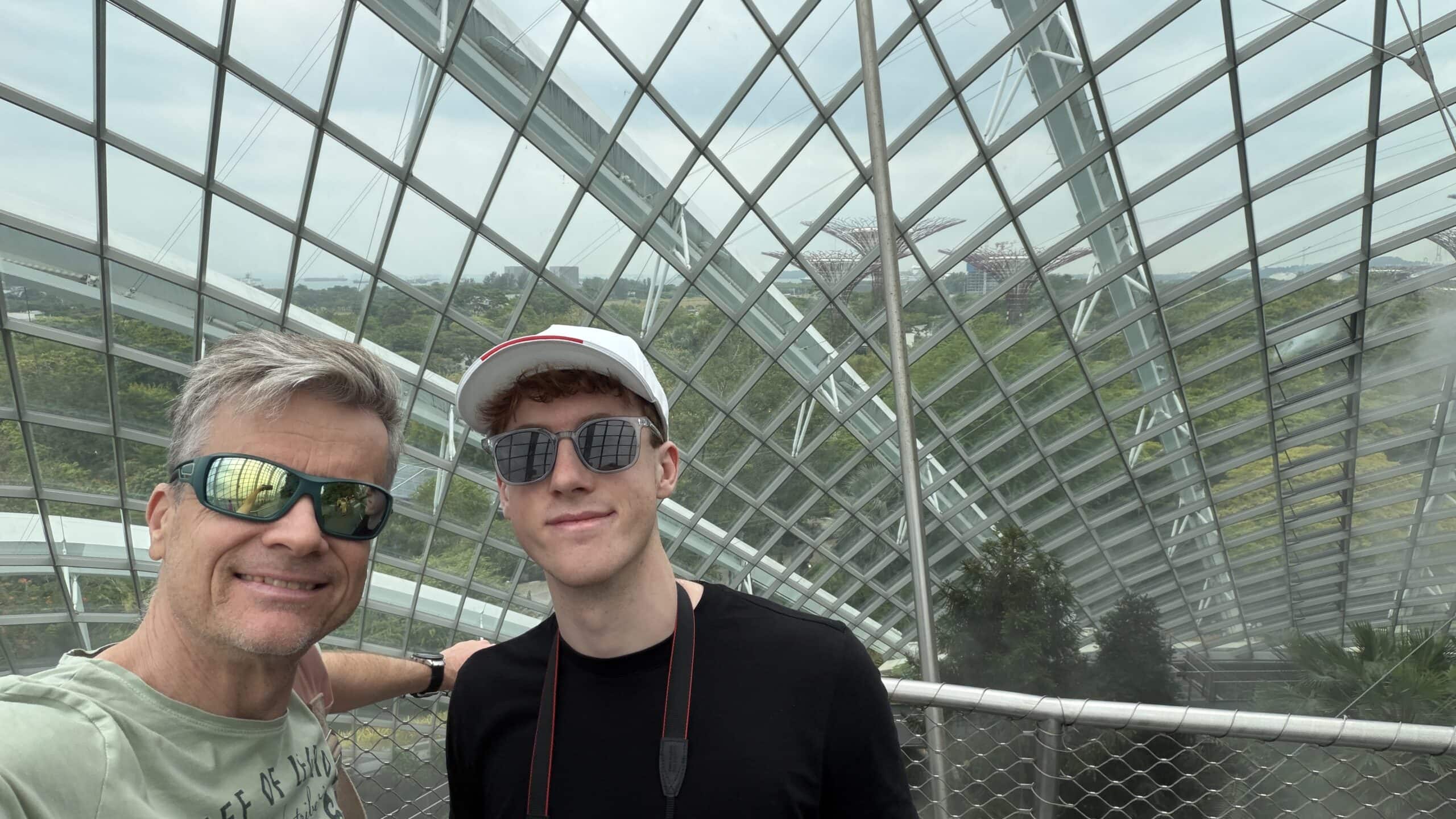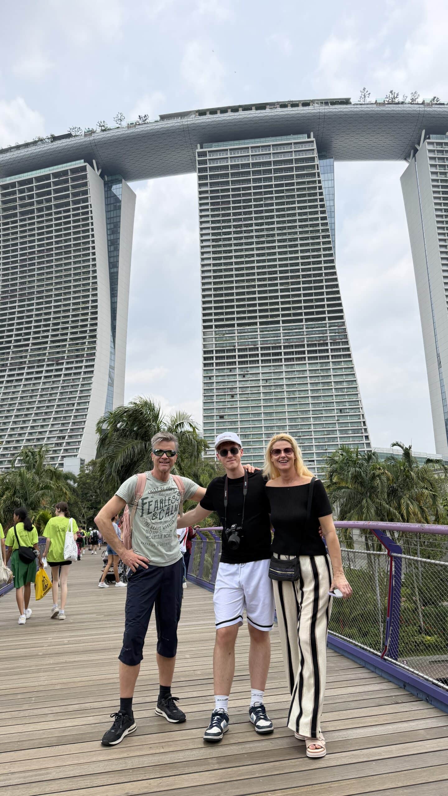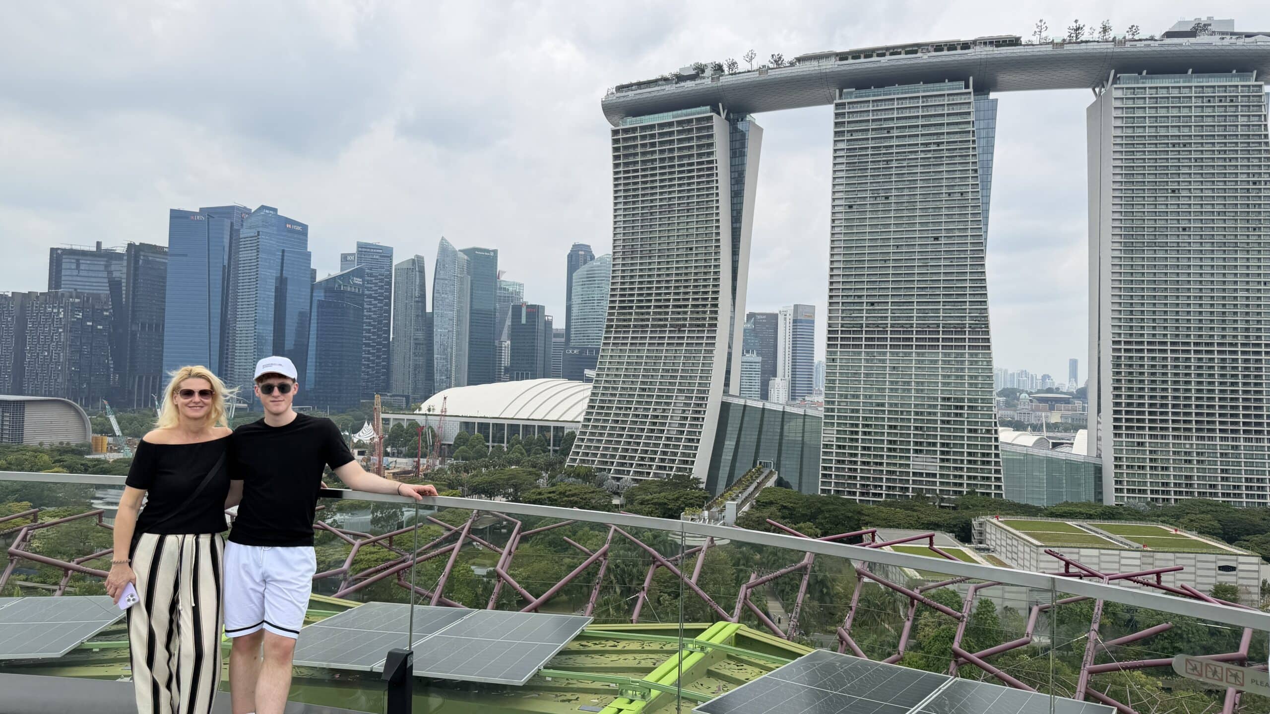Zunächst bestanden wir diese großen künstlichen Bäume und fuhren dann auf den Supertree. Von der oben hat man einen herrlichen Ausblick auf unser Hotel und die Skyline von Singapur.