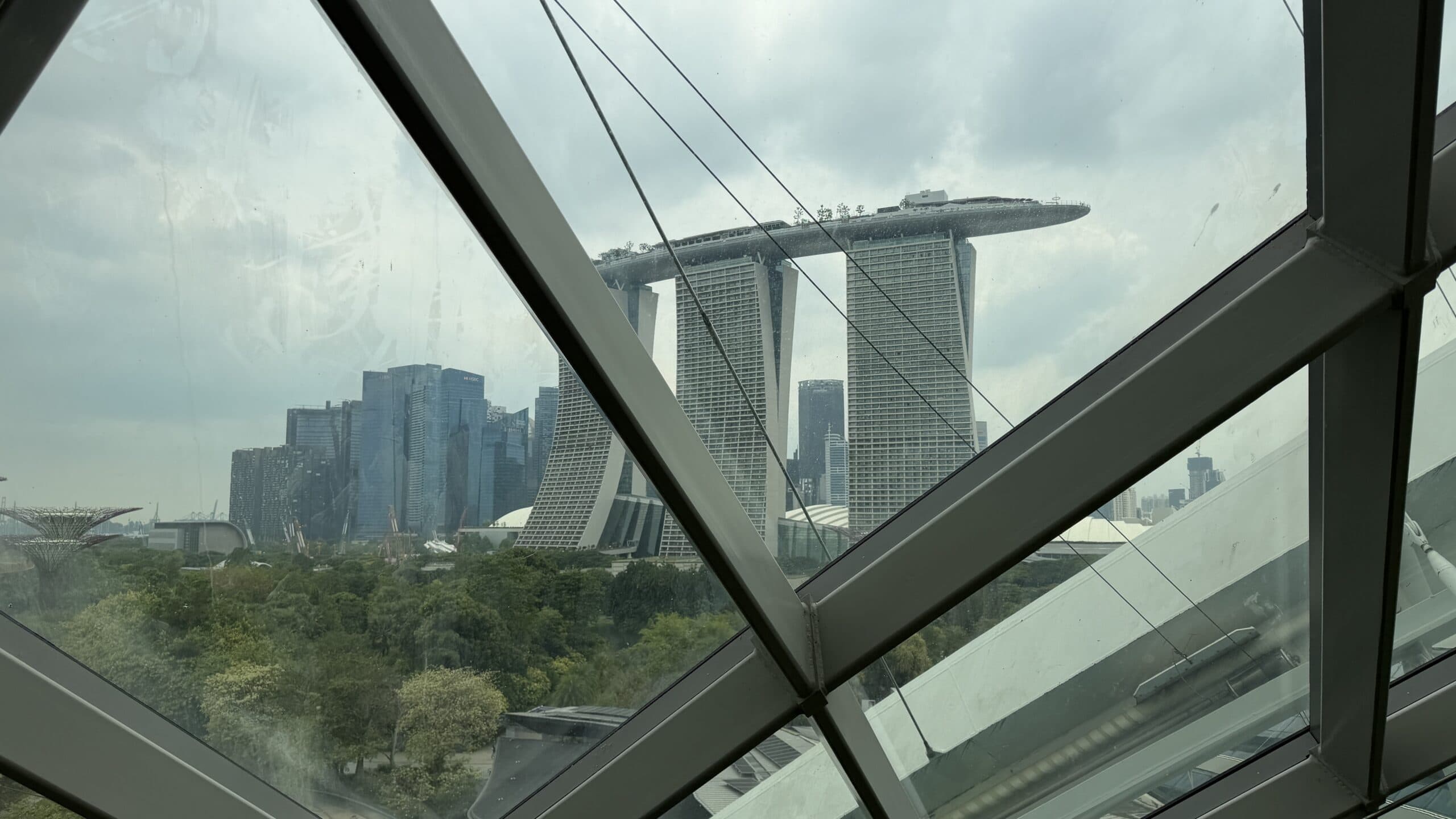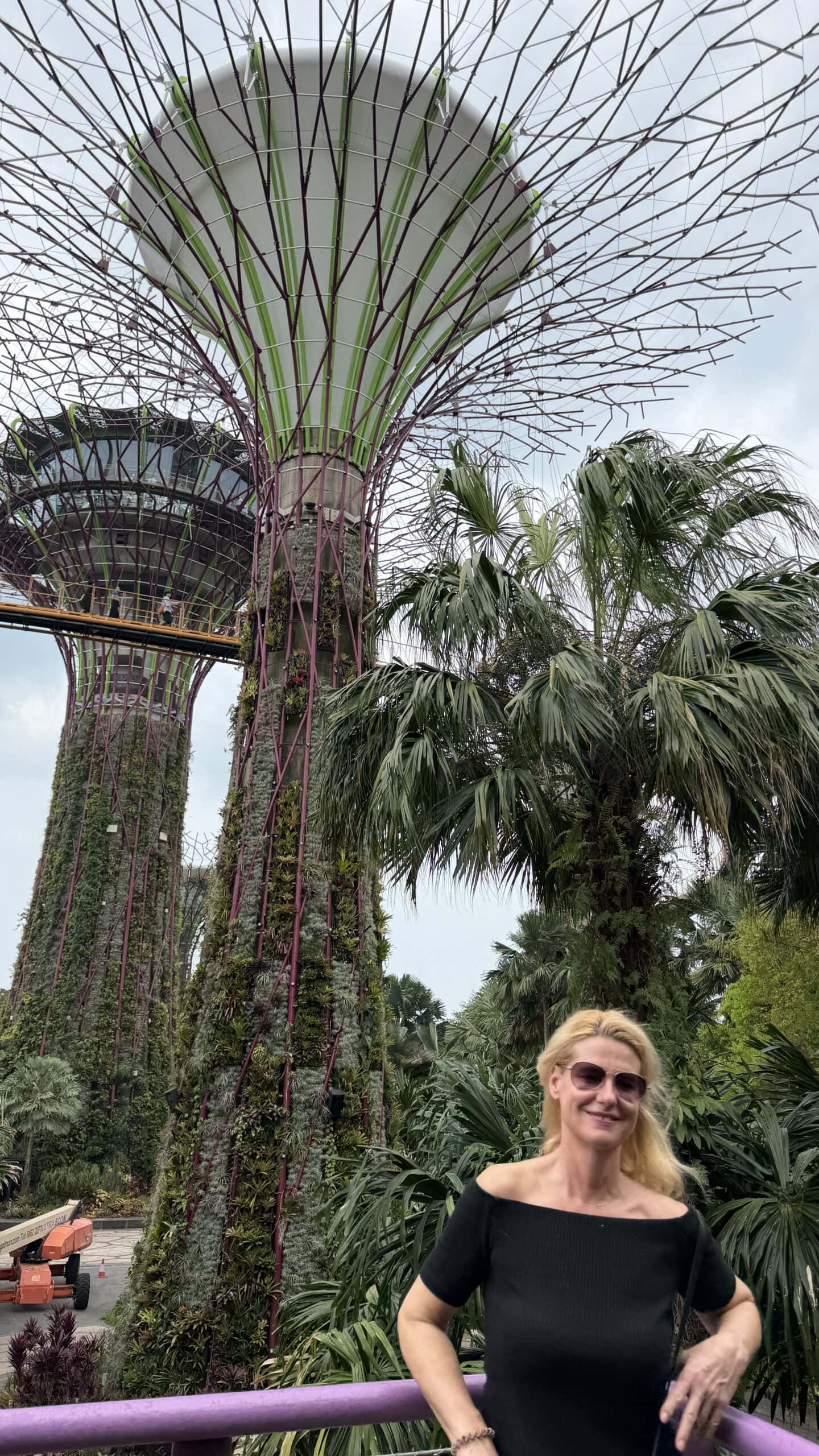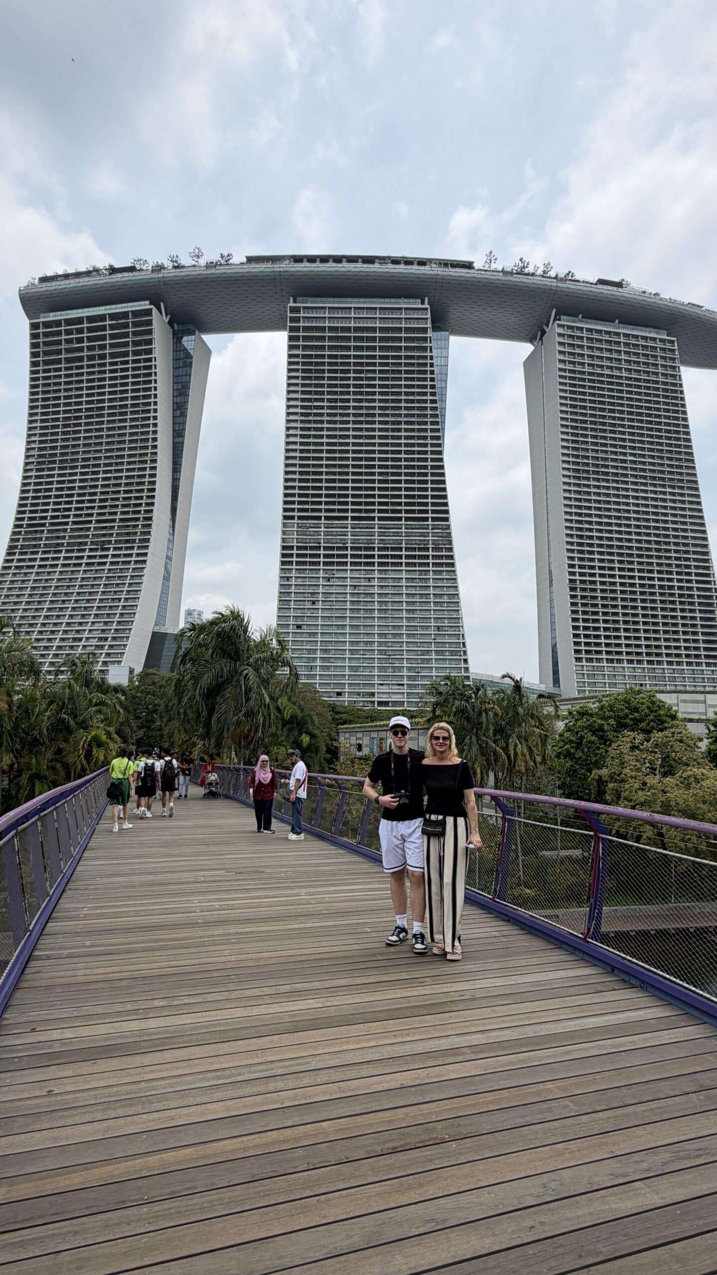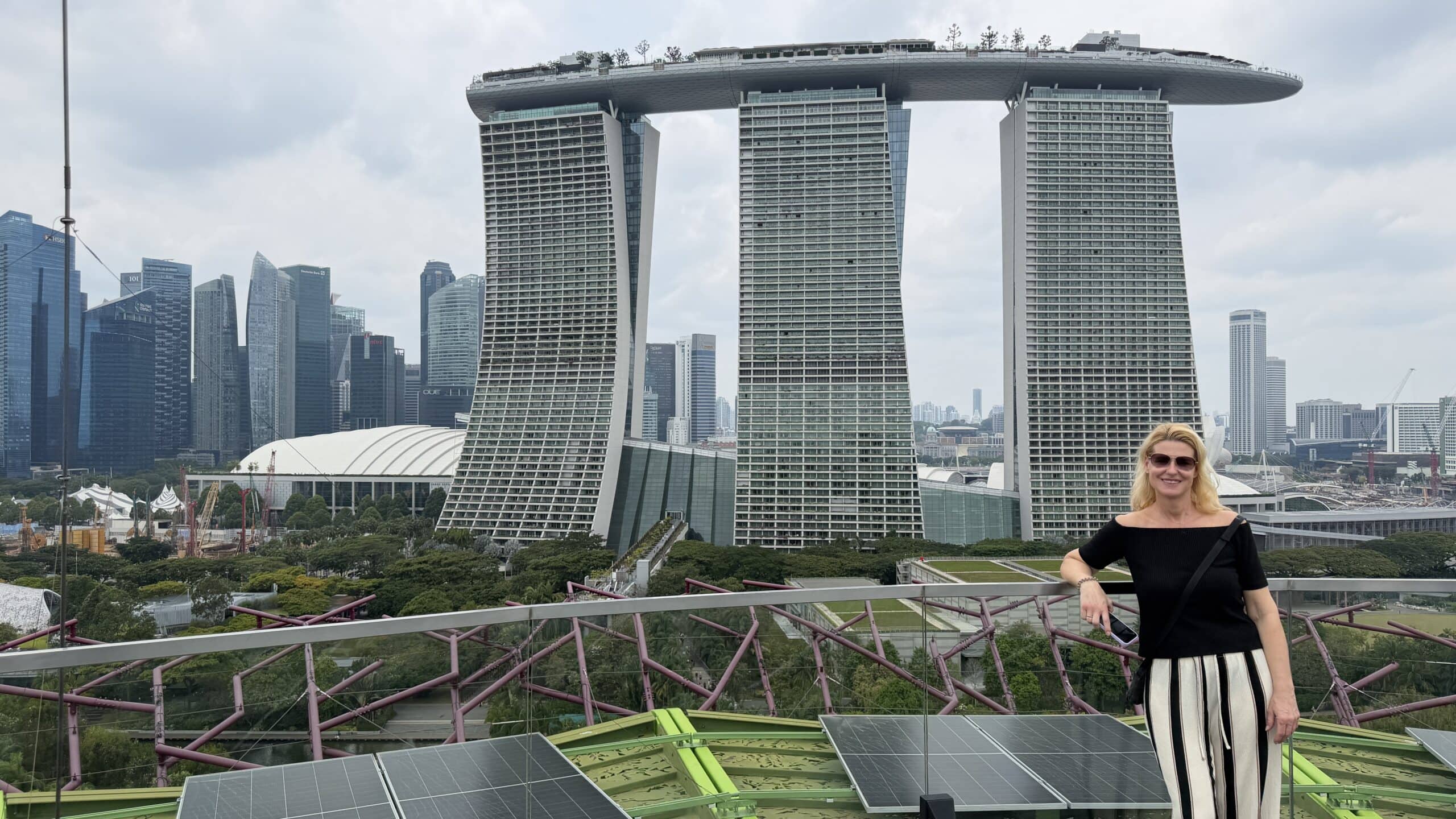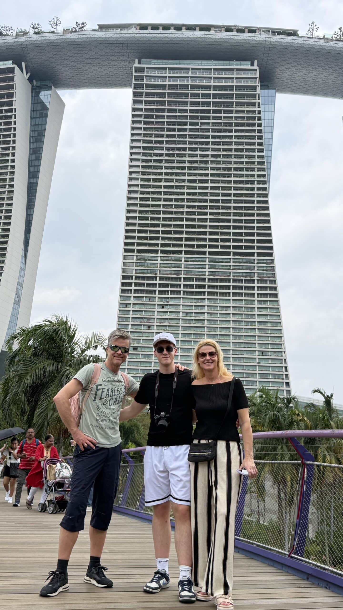 Zunächst bestanden wir diese großen künstlichen Bäume und fuhren dann auf den Supertree. Von der oben hat man einen herrlichen Ausblick auf unser Hotel und die Skyline von Singapur.