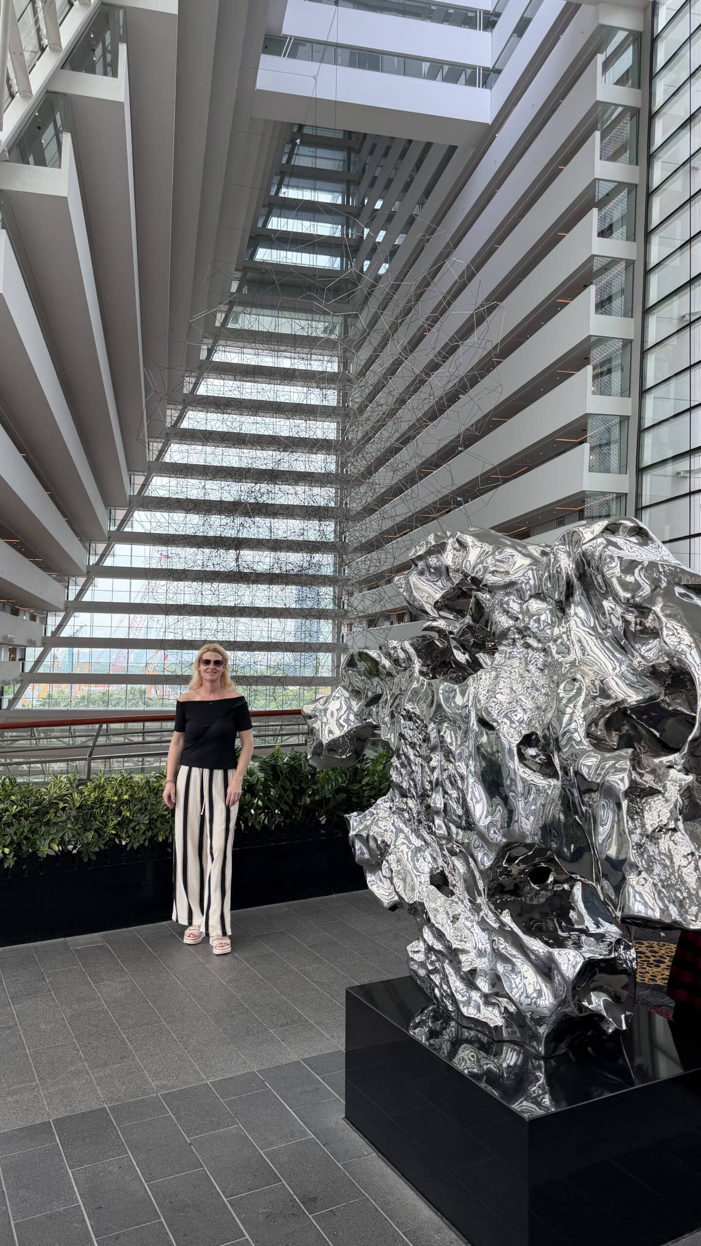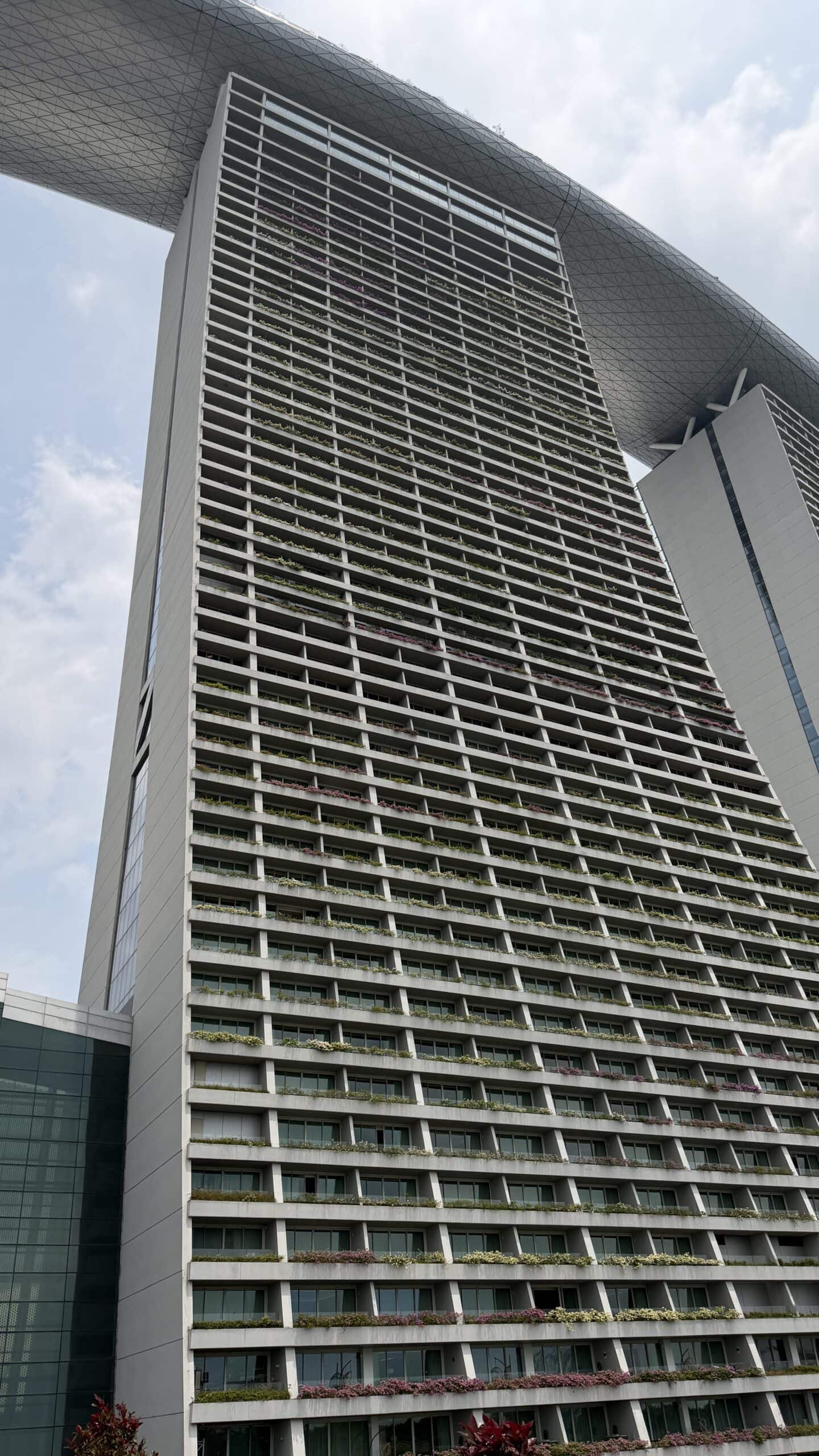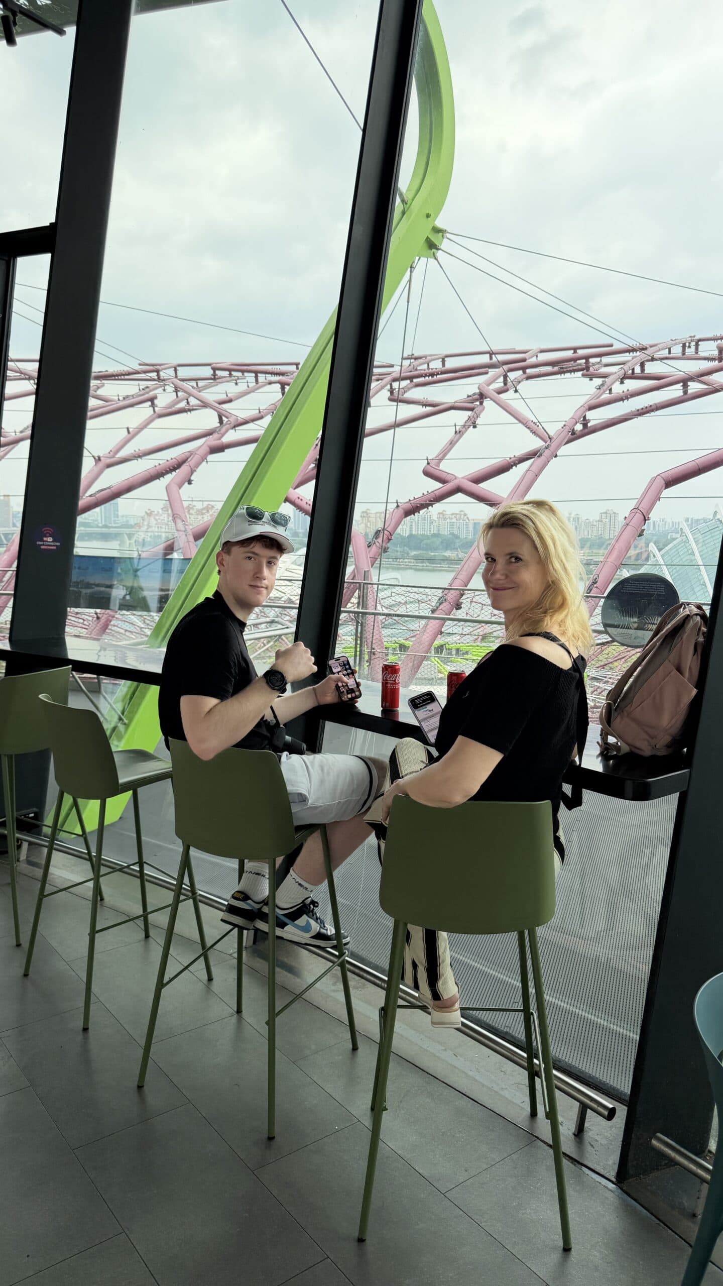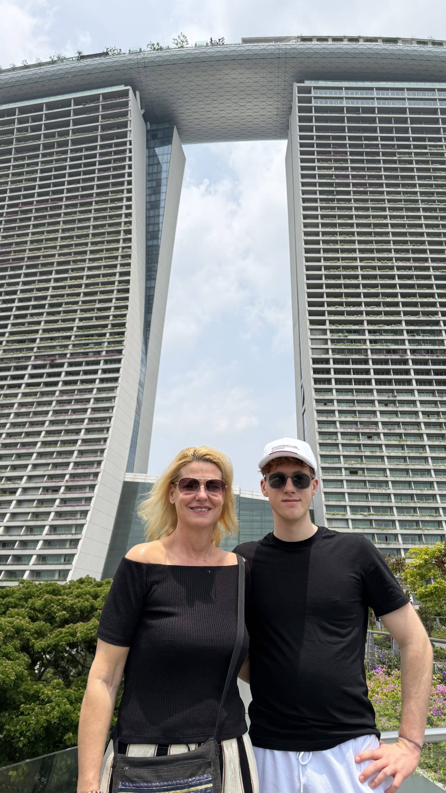 Zunächst bestanden wir diese großen künstlichen Bäume und fuhren dann auf den Supertree. Von der oben hat man einen herrlichen Ausblick auf unser Hotel und die Skyline von Singapur.