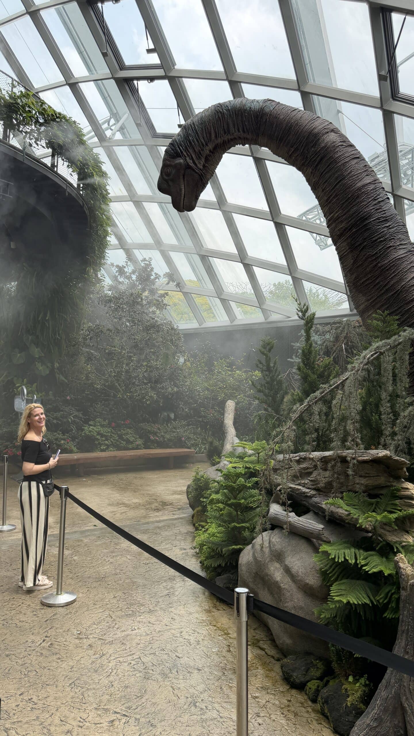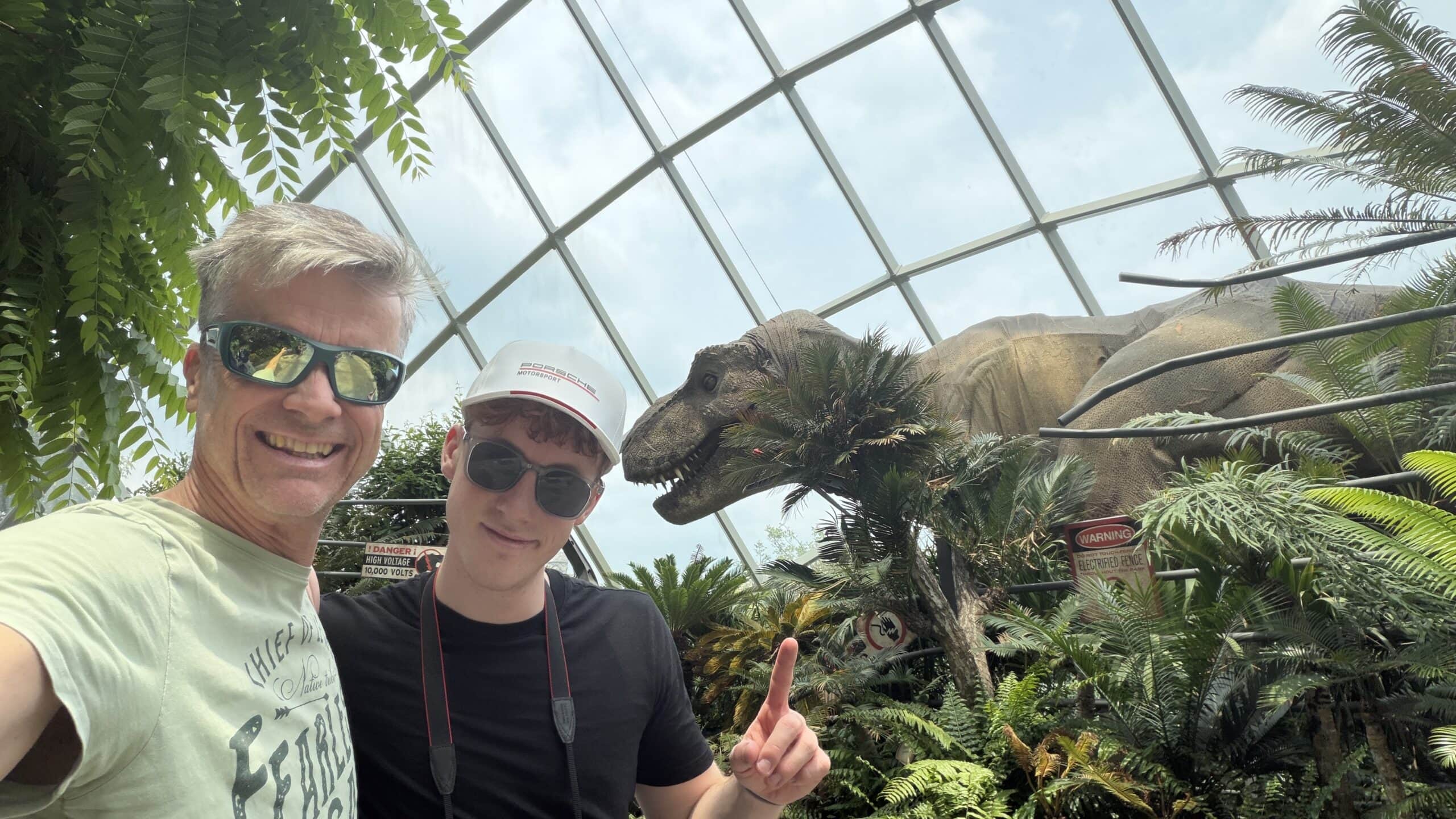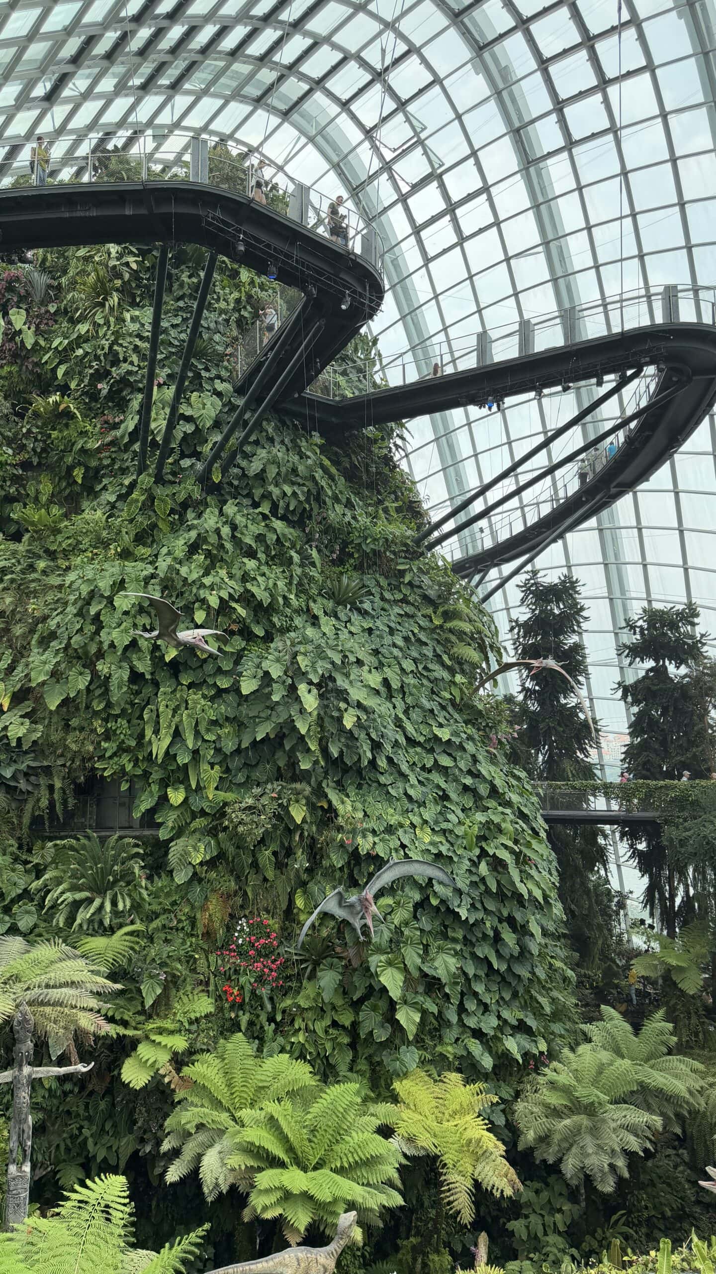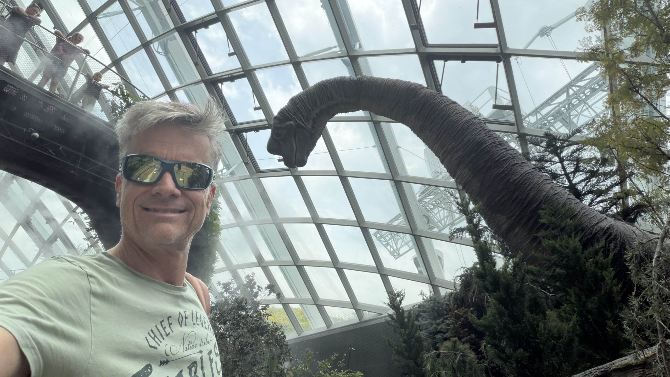 Nach einer kurzen Rast mit Kaffee gingen wir dann um 13:45 Uhr weiter zu der großen Halle Cloud Forrest mit Regenwald Klima und vielen großen Dinosauriern 🦕 . Das ist echt eine coole Halle und wir waren über 1 Stunde drinnen. Dann gingen wir zur nächsten Halle die Flower Halle mit Blumen und Pflanzen aus der ganzen Welt.