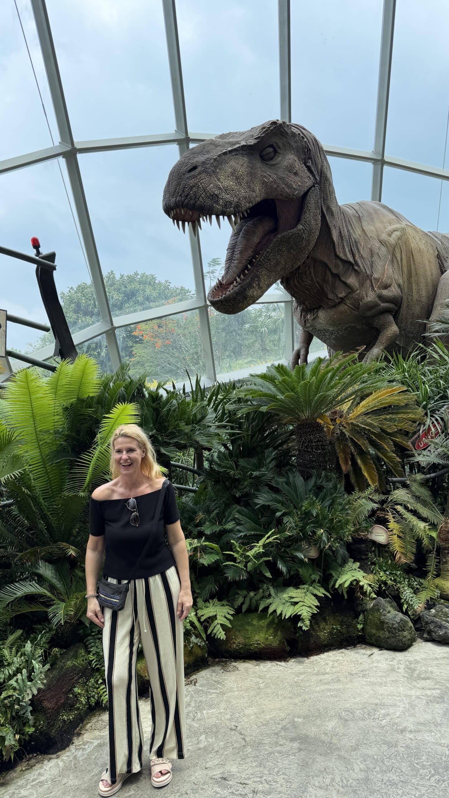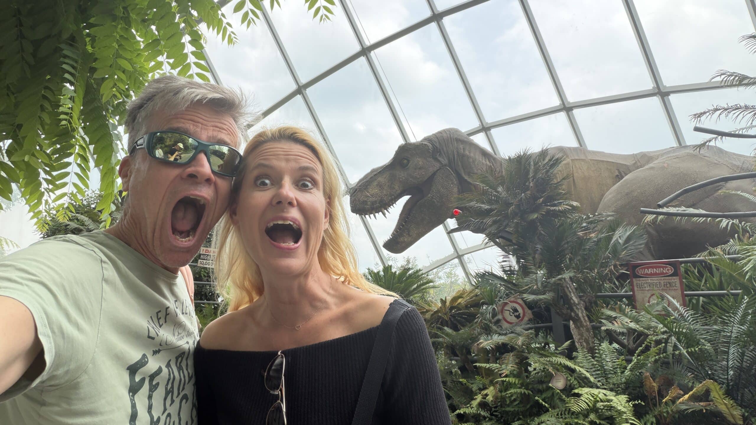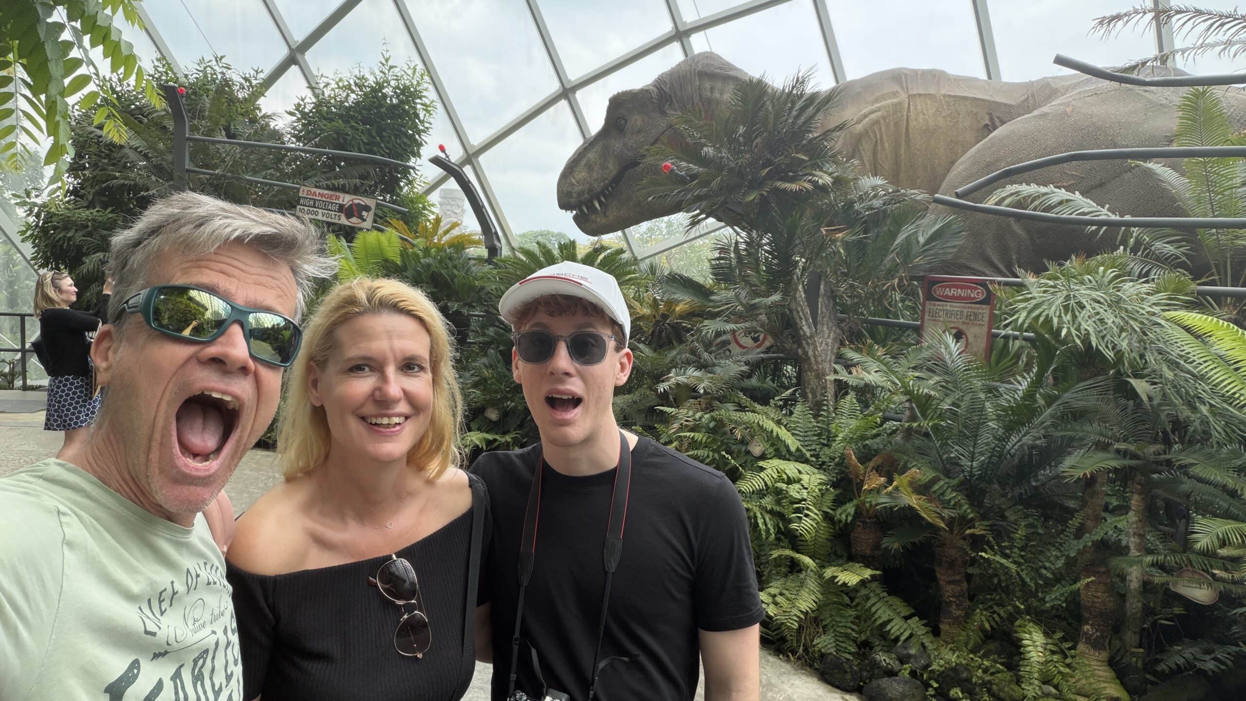 Nach einer kurzen Rast mit Kaffee gingen wir dann um 13:45 Uhr weiter zu der großen Halle Cloud Forrest mit Regenwald Klima und vielen großen Dinosauriern 🦕 . Das ist echt eine coole Halle und wir waren über 1 Stunde drinnen. Dann gingen wir zur nächsten Halle die Flower Halle mit Blumen und Pflanzen aus der ganzen Welt.