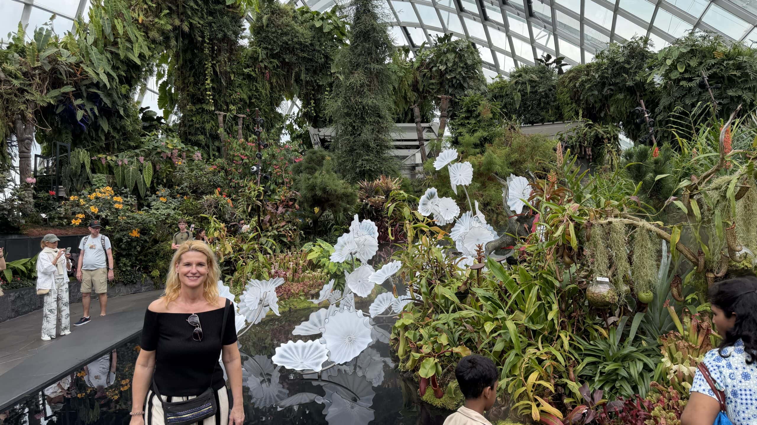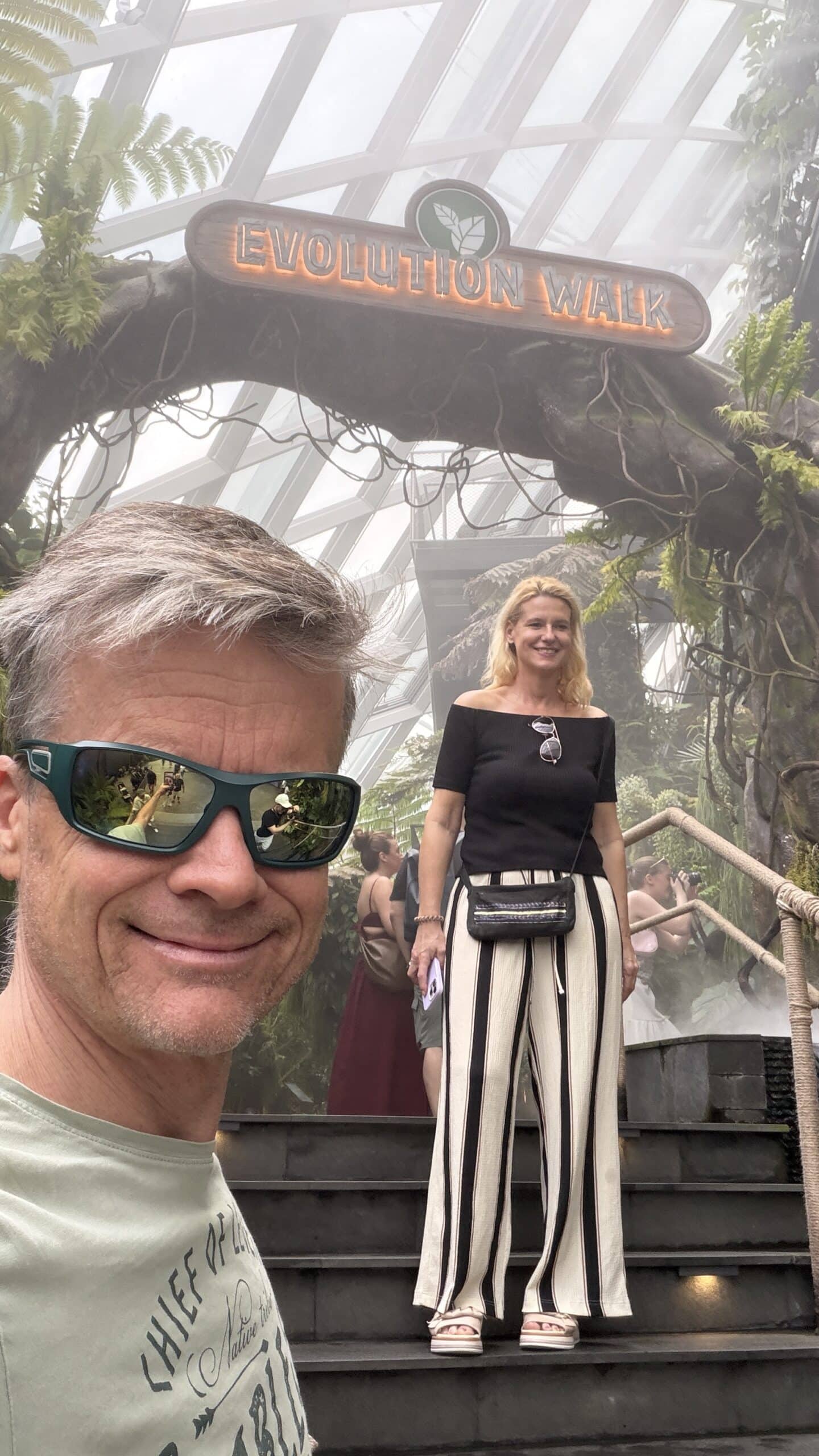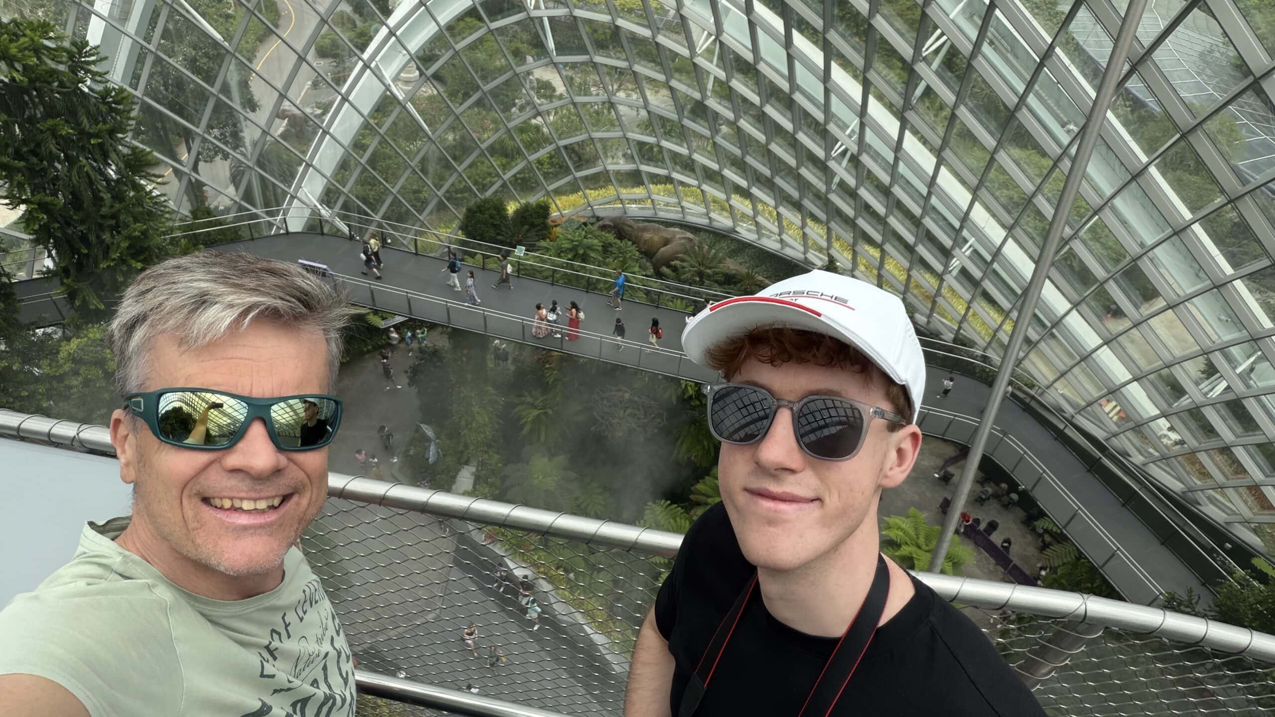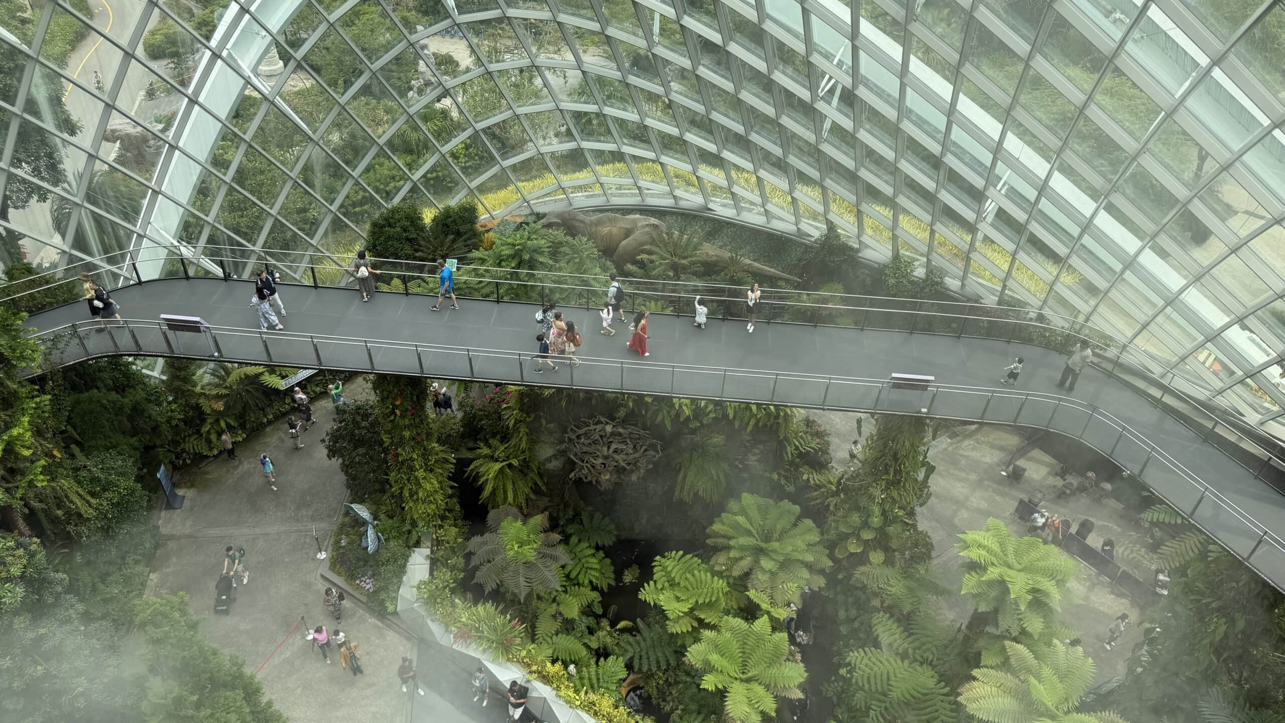 Nach einer kurzen Rast mit Kaffee gingen wir dann um 13:45 Uhr weiter zu der großen Halle Cloud Forrest mit Regenwald Klima und vielen großen Dinosauriern 🦕 . Das ist echt eine coole Halle und wir waren über 1 Stunde drinnen. Dann gingen wir zur nächsten Halle die Flower Halle mit Blumen und Pflanzen aus der ganzen Welt.