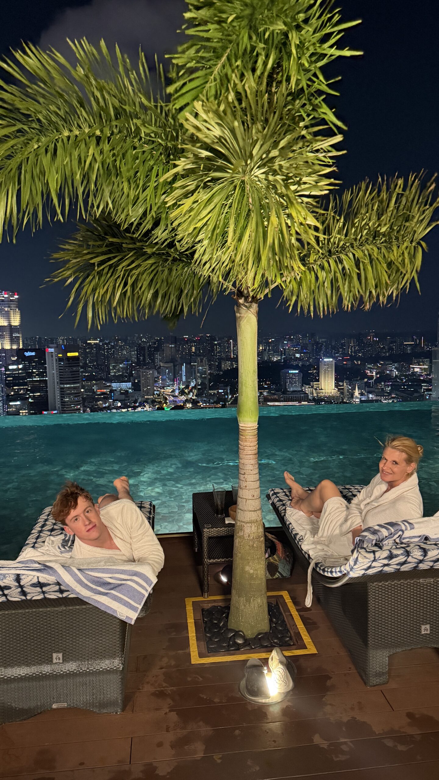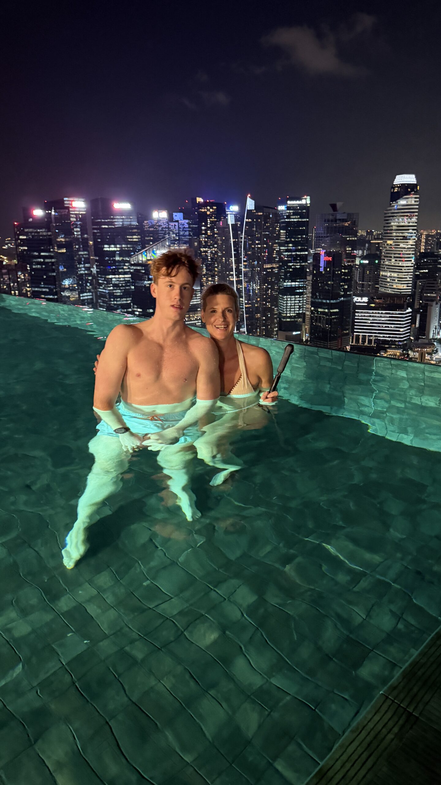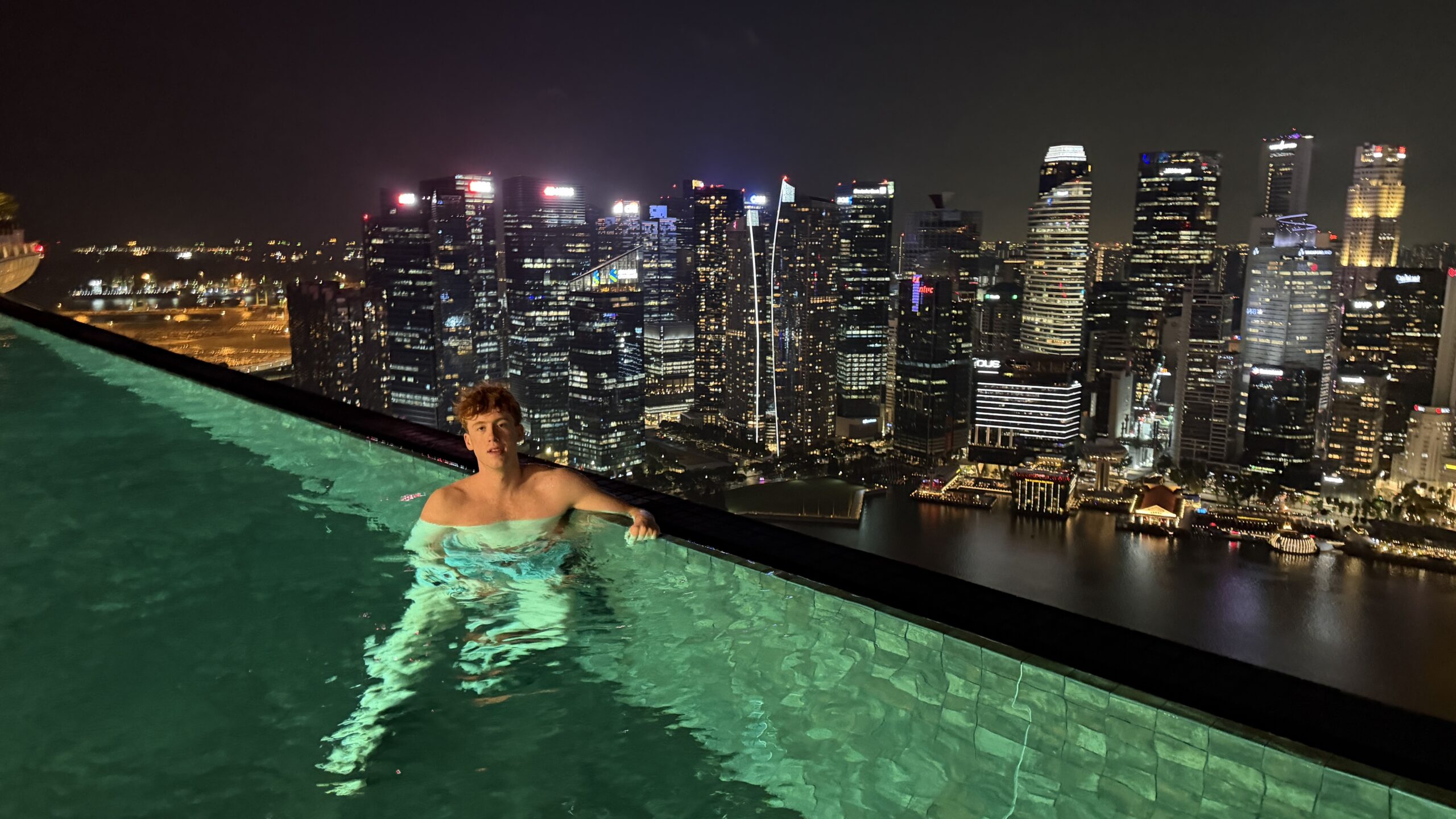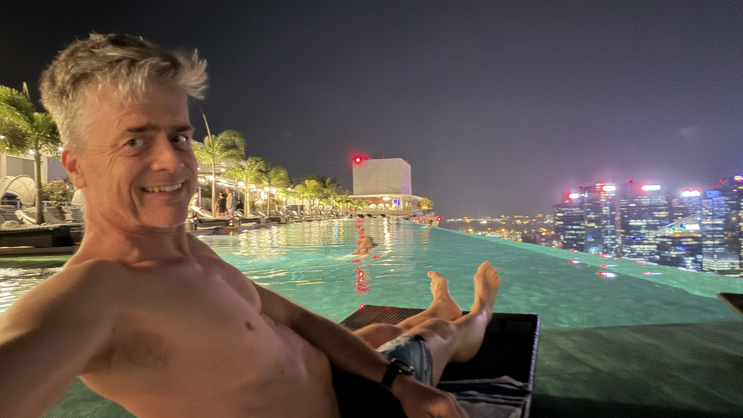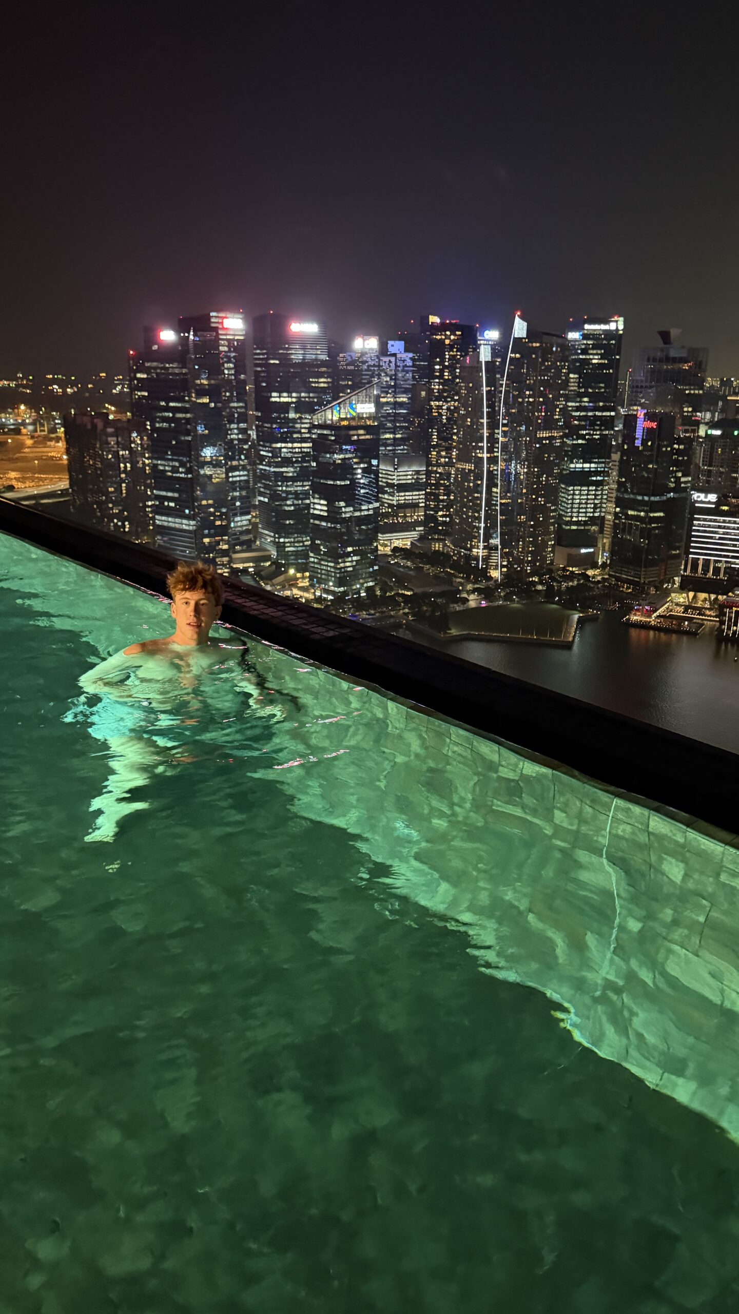 Nach 1 Stunde gegen 19:30 Uhr fahren wir wieder zurück in unser Hotel. Dort gingen wir dann gleich hinauf zum Sky Pool haben eine Fruchtbowl mit Eis gegessen. Danach geht’s gleich ins Wasser und wir genossen den Ausblick auf die Skyline.