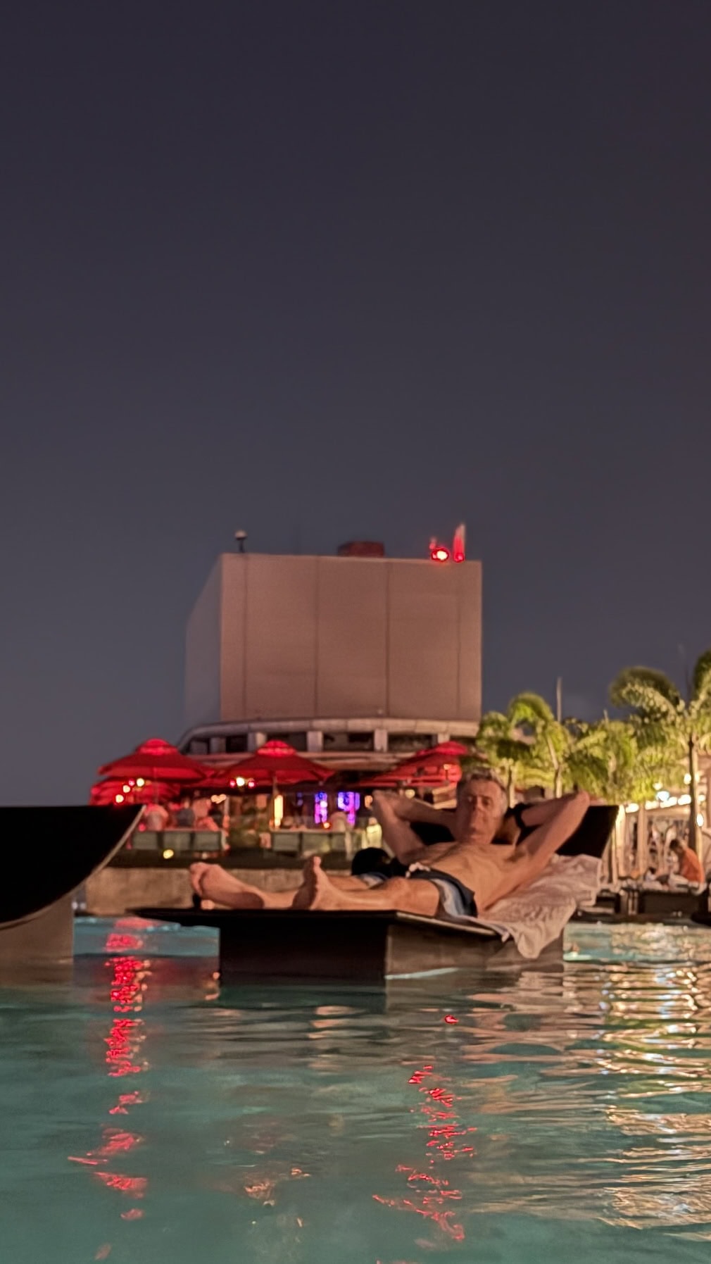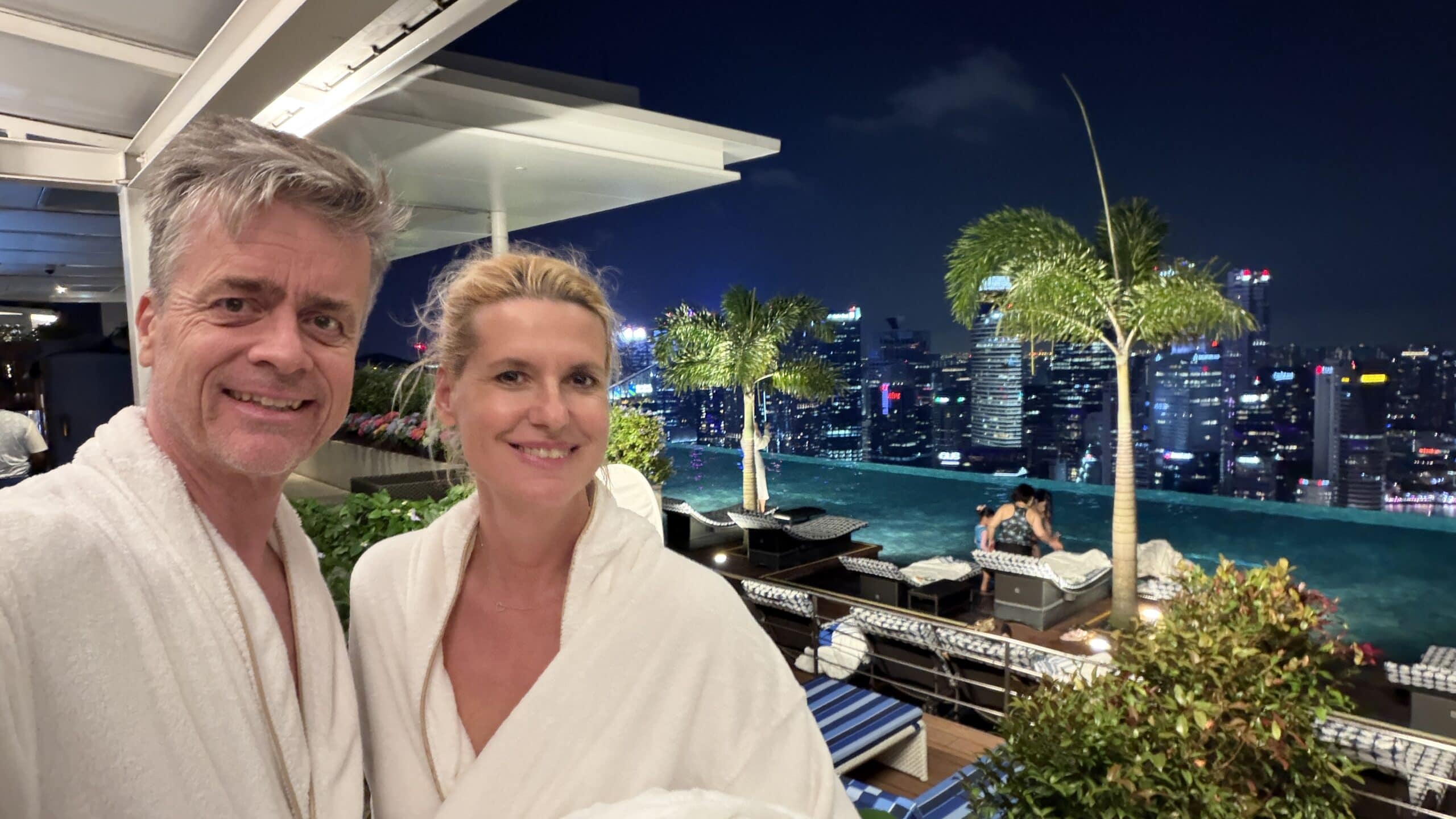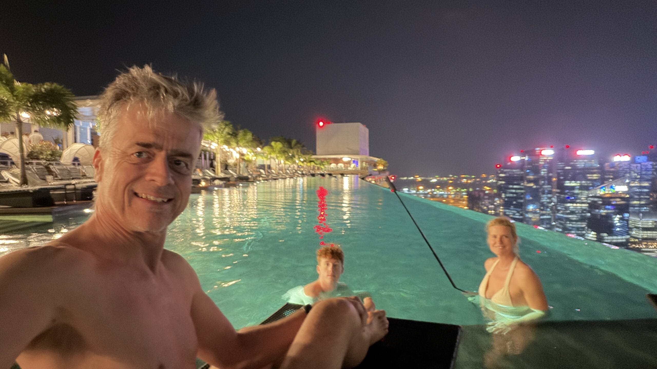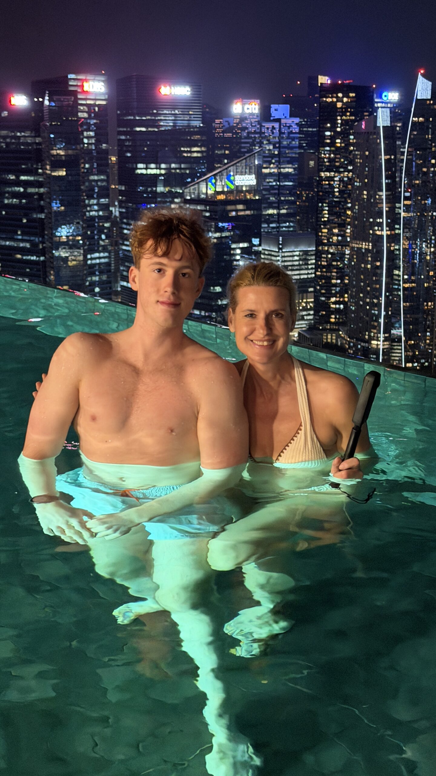 Nach 1 Stunde gegen 19:30 Uhr fahren wir wieder zurück in unser Hotel. Dort gingen wir dann gleich hinauf zum Sky Pool haben eine Fruchtbowl mit Eis gegessen. Danach geht’s gleich ins Wasser und wir genossen den Ausblick auf die Skyline.