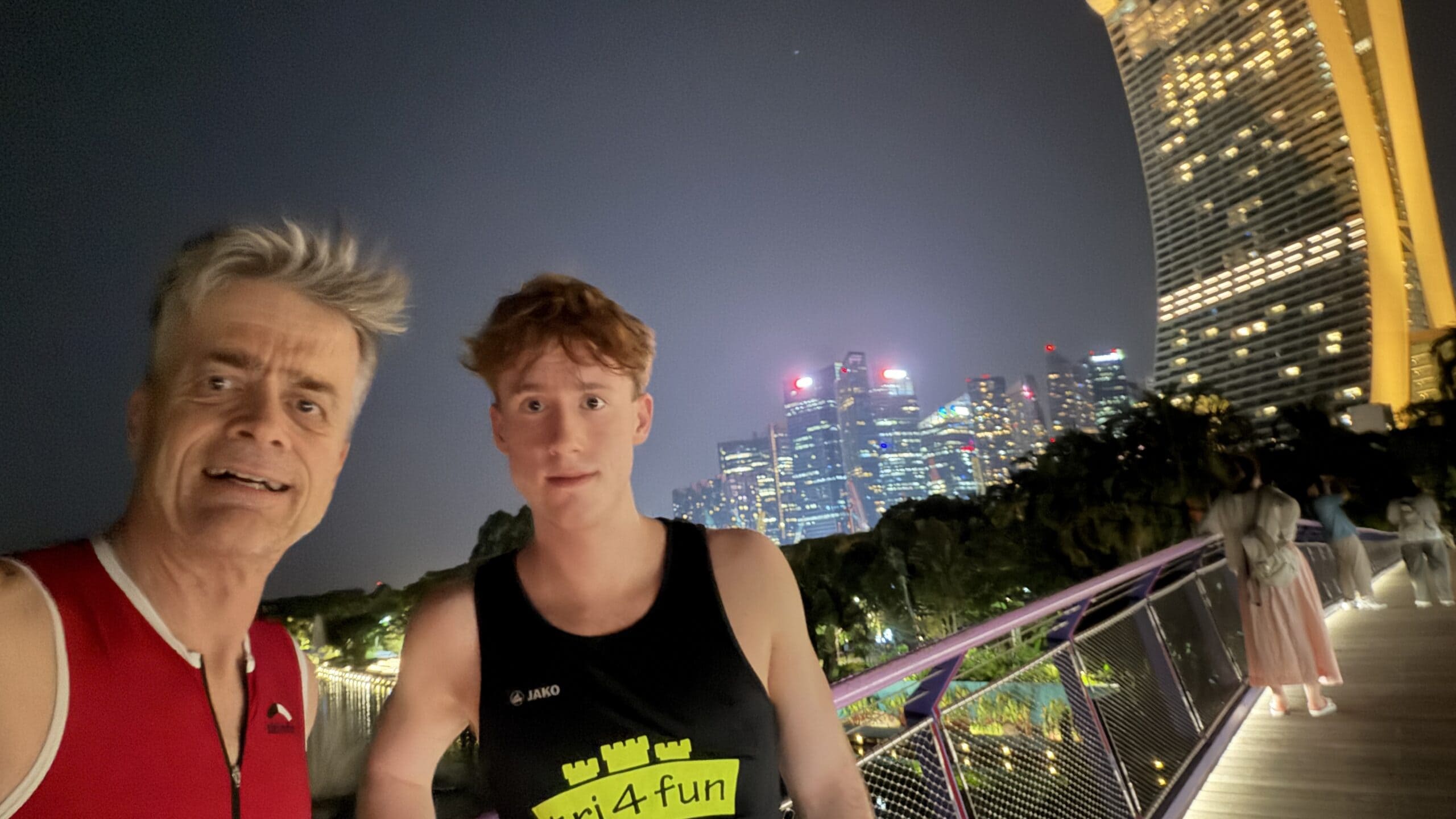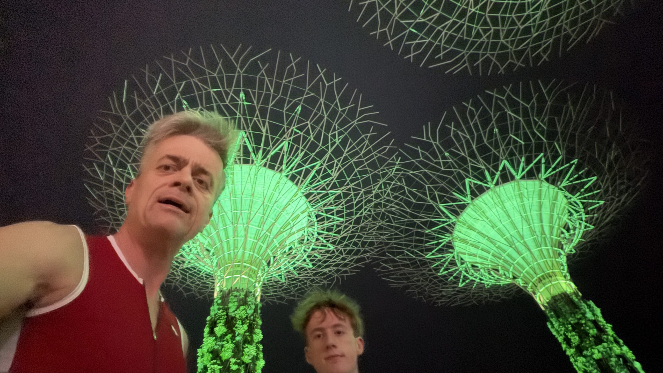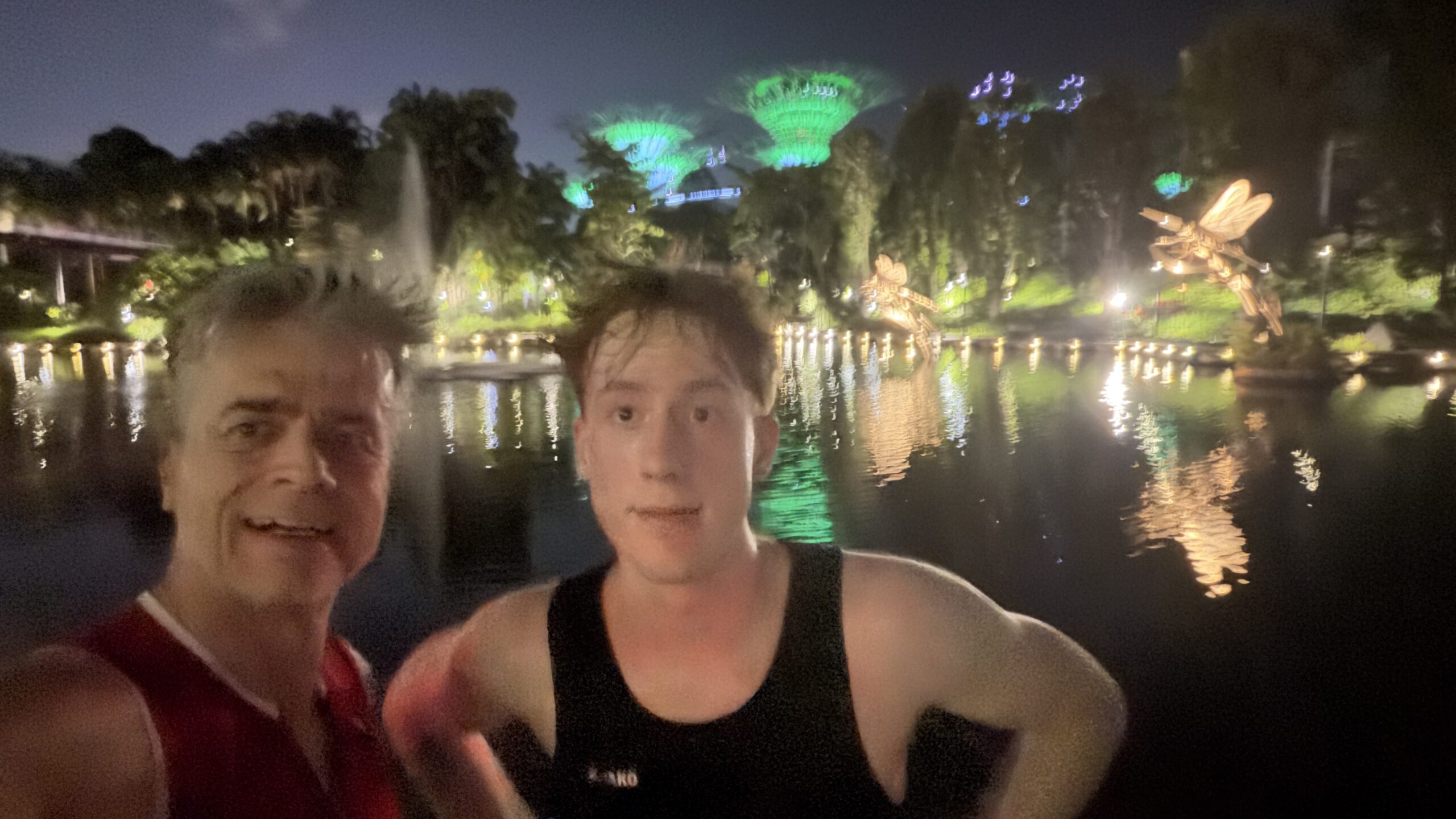War ein toller Lauf im toll beleuchten Park. Beim Supertree haben wir getroffen. Nico und ich sind im gesamten Park abgelaufen und Birgit konnte nicht genug von den Fotomotiven bekommen und war dann noch nicht im Hotelzimmer als wir gegen 23:15 Uhr zurückkamen. Ich habe mir Sorgen gemacht, mir gesucht und dann mit viel Freude beim Videodreh im Park getroffen. Es war ein ganz toller erster Tag mit unterschiedlichstem Programm.