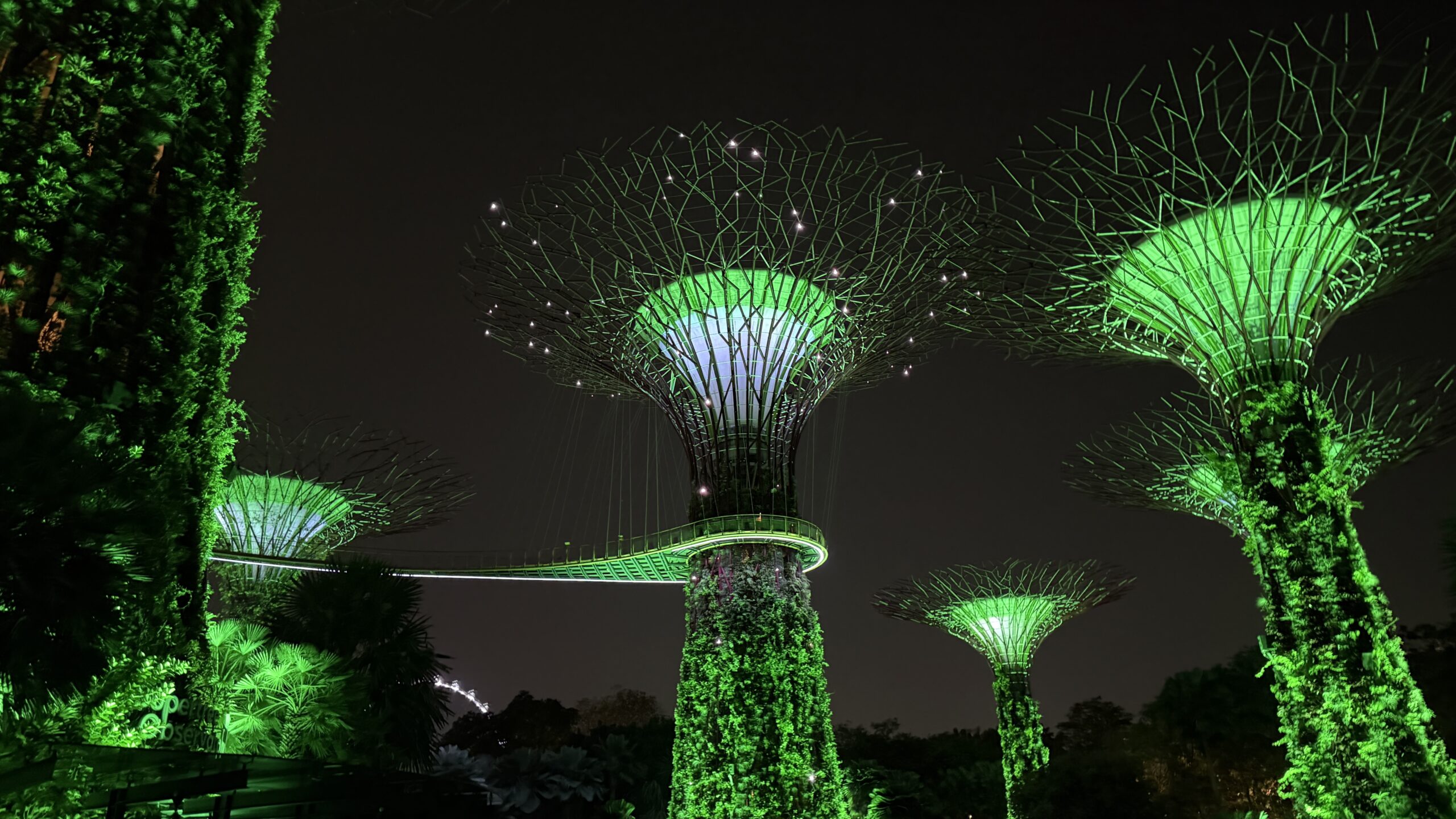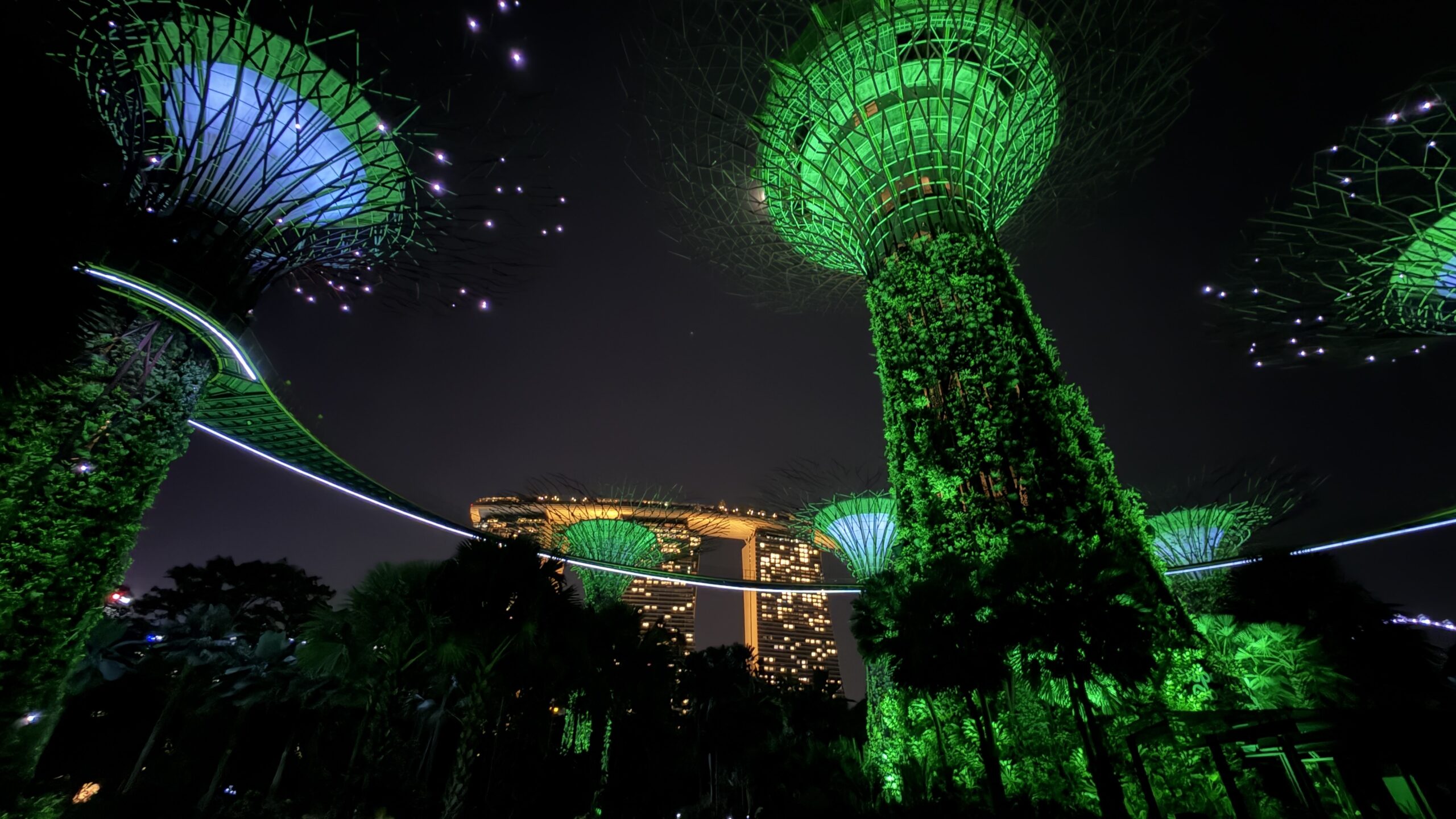 Bay. Das ist ein großer Garten beziehungsweise Wald mit kleinen Teichen und riesengroßen künstlichen Bäumen, welche in der Nacht beleuchtet sind. Gibt es noch zwei sehr große Hallen Cloud Forest Jurassic Park und Flower Garden.