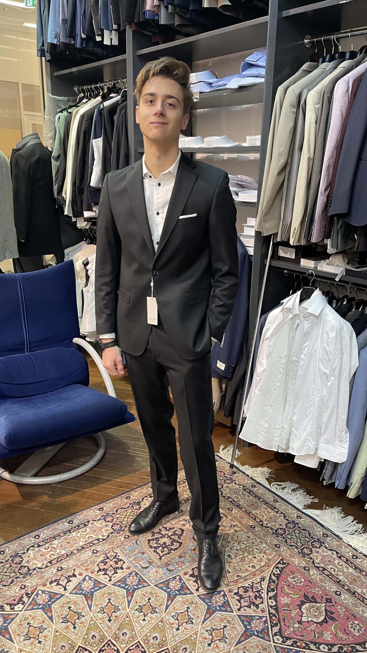 am Samstag war ich mit Luca Anzug für Matura und Maturaball kaufen bei SPADA und ich hab mir nach über zehn Jahren auch wieder einen Anzug gekauft, beide in dunkel schwarz.