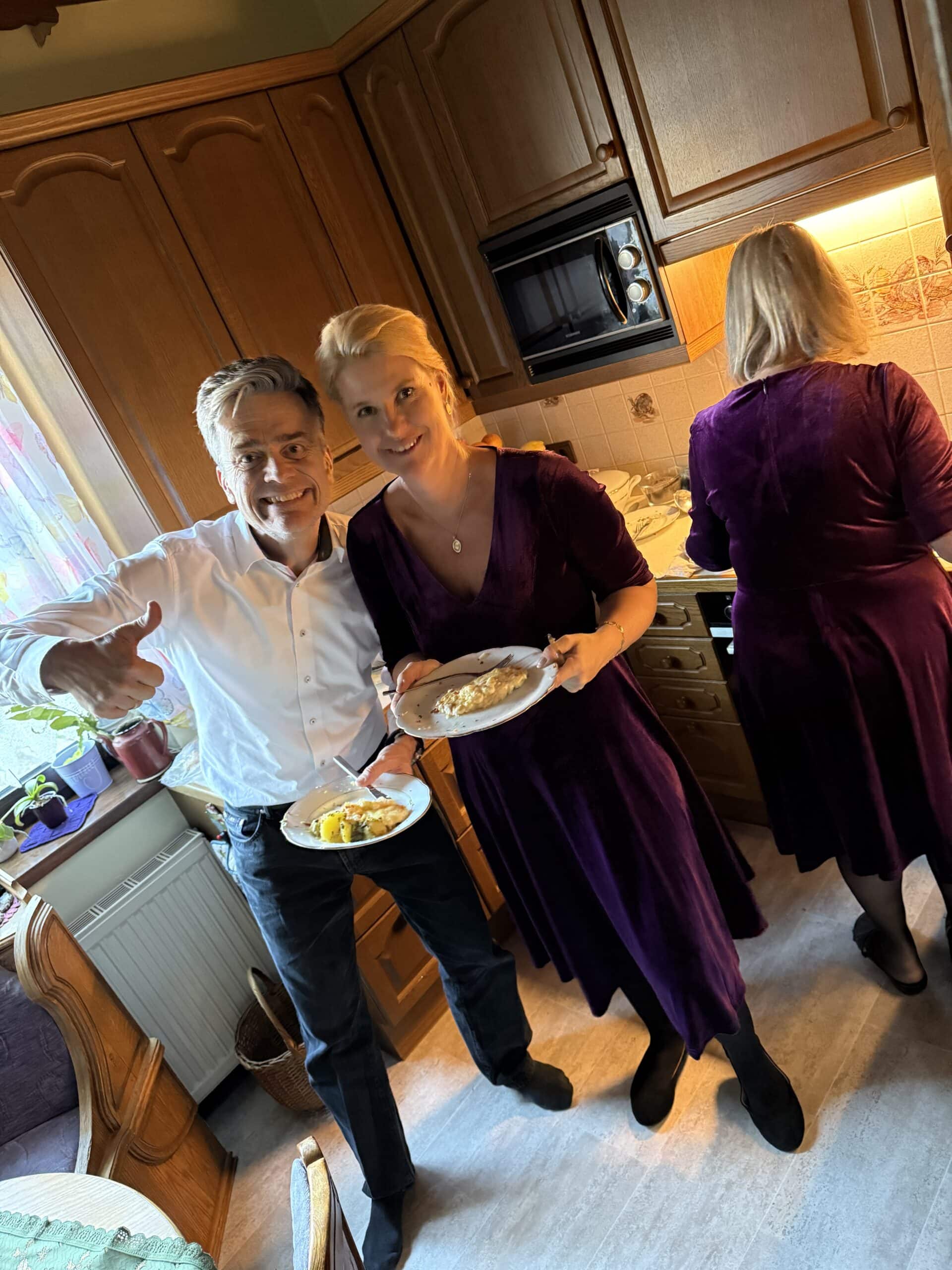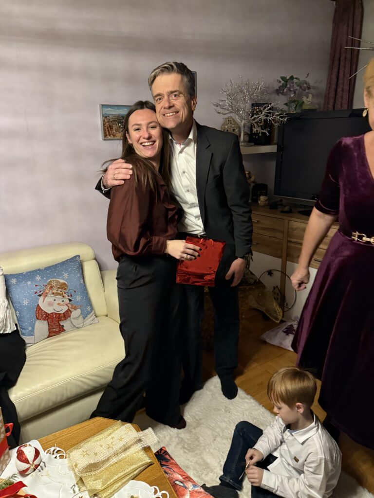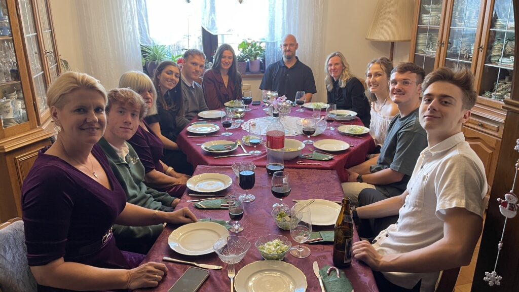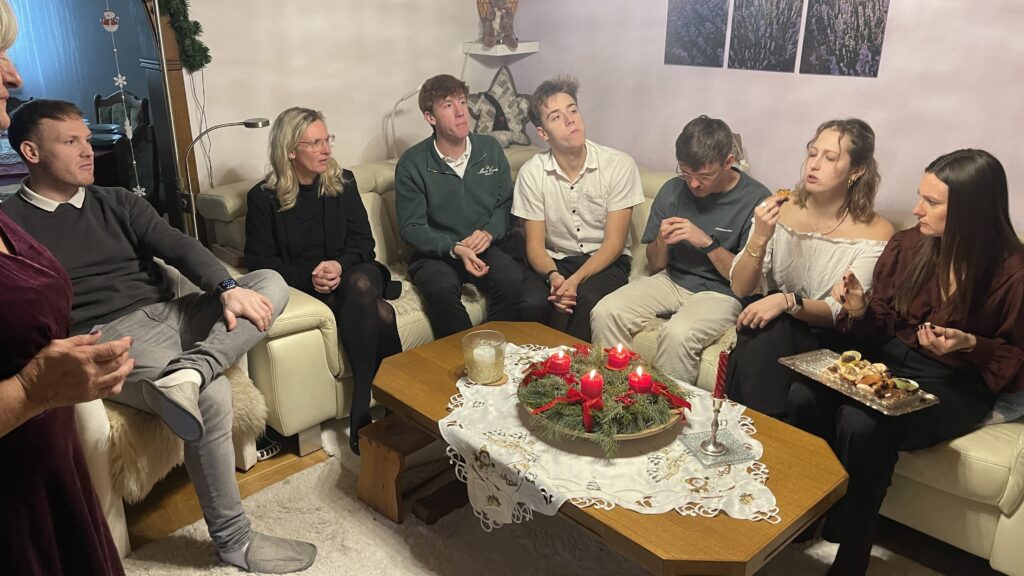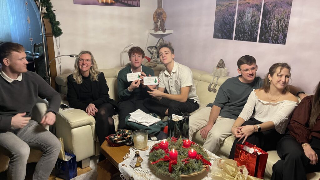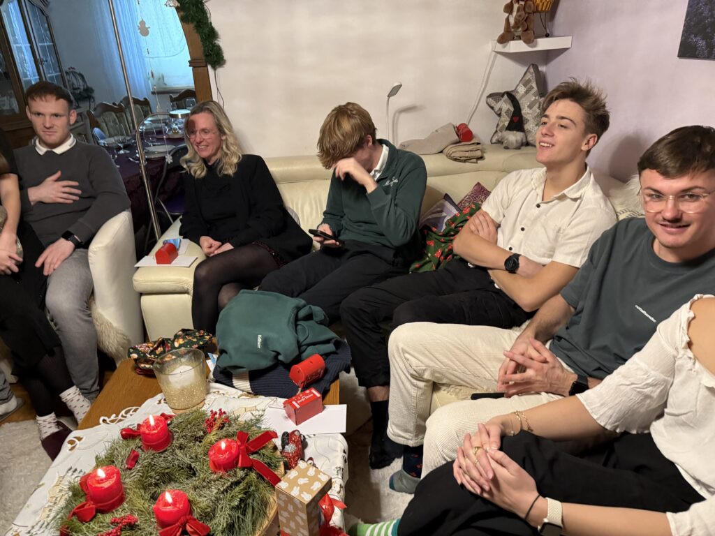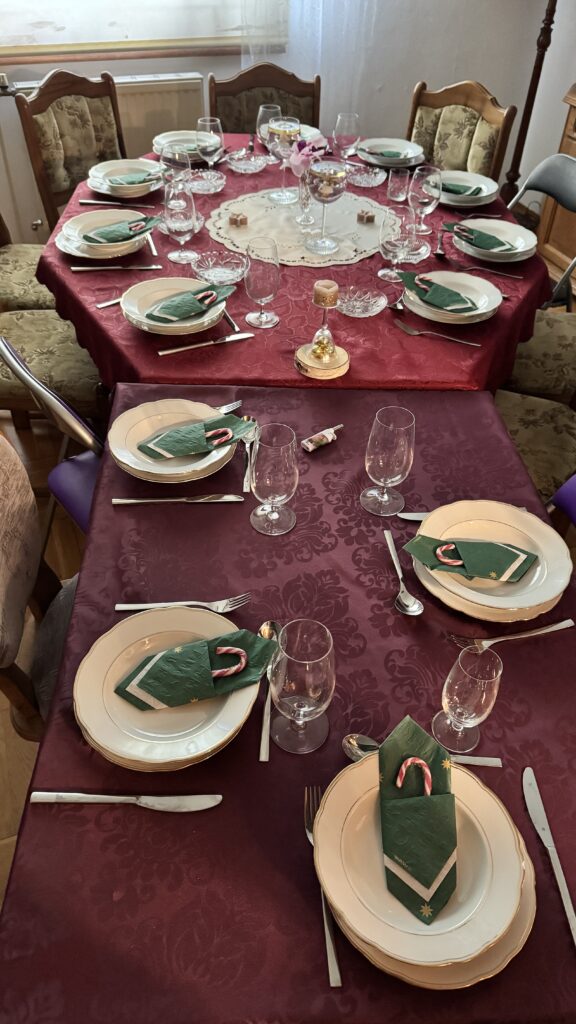 Danach gab es ein leckeres Weihnachtsmenü mit Suppe und Käse Schnitzel und Nachspeise.
