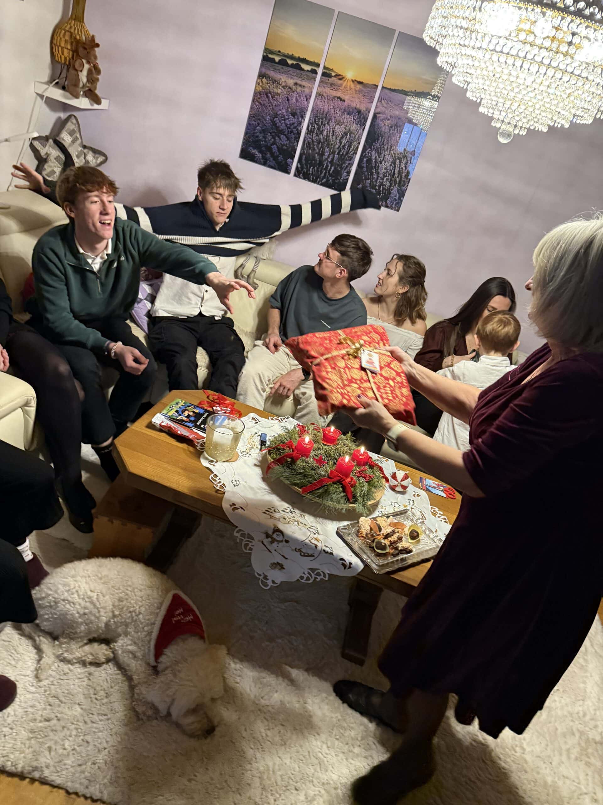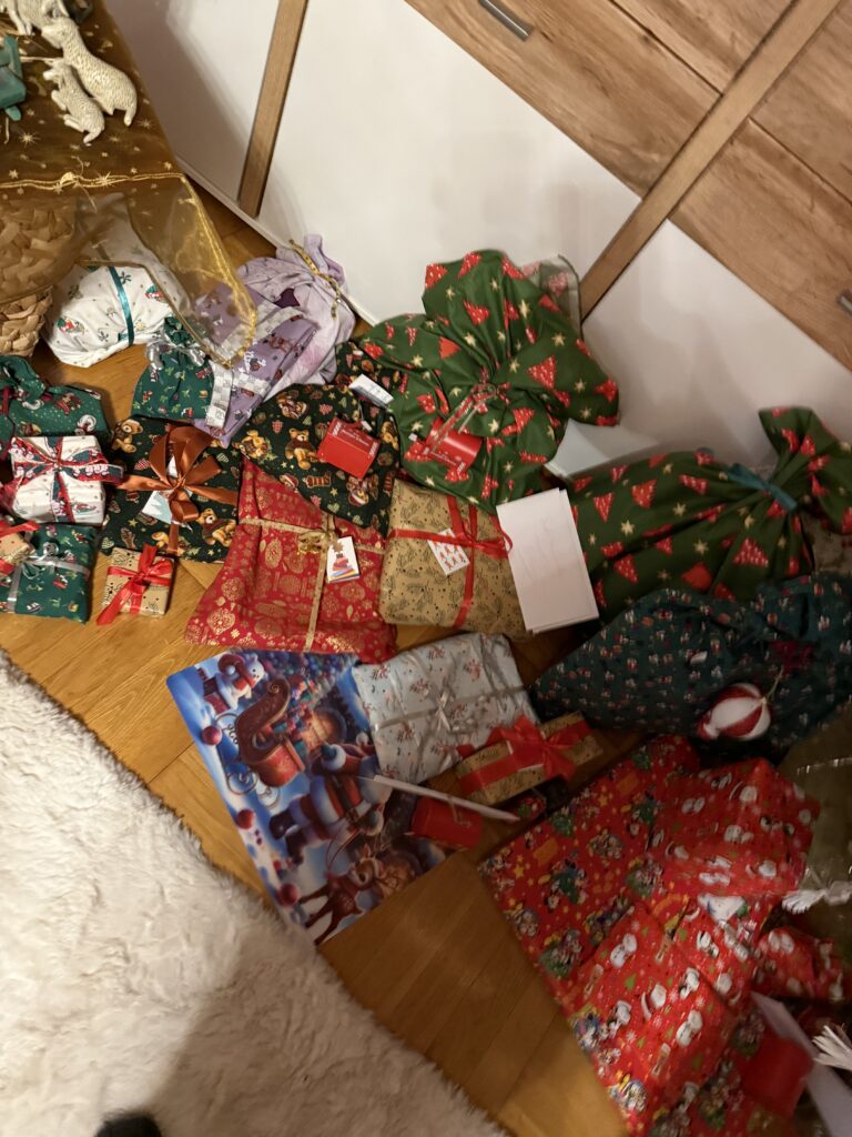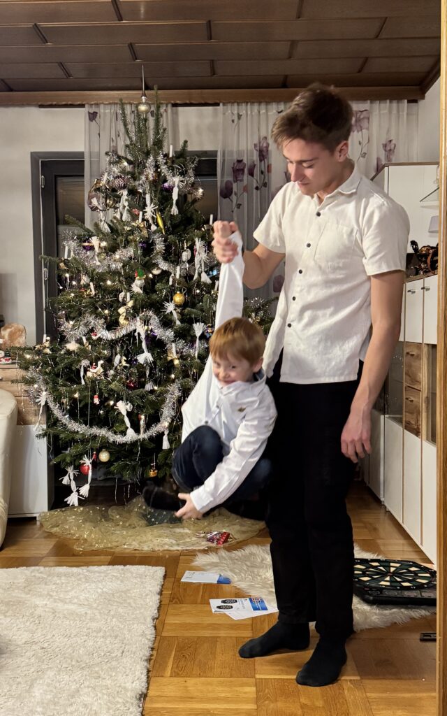 Wie jedes Jahr treffen wir uns am Christtag um 13:00 Uhr in Wördern bei Veronika Oma. Gleich am Beginn gab es die Bescherung. Es gab wieder ganz viele Geschenke und wir haben die Geschenke eins nach dem anderen aufgemacht und es war sehr feierlich.