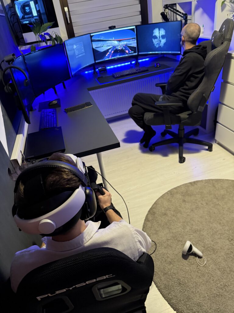 Luca ist mit Jürgen dann zu Simon gefahren und sie haben sich sein PC Setup angesehen gemeinsam mit seiner VR Brille und einem Rennfahrerlenkrad. Nico ist nach Dürn Rohr zu Pia mit dem Zug gefahren.