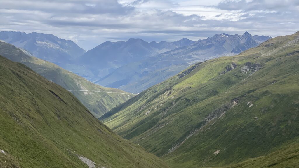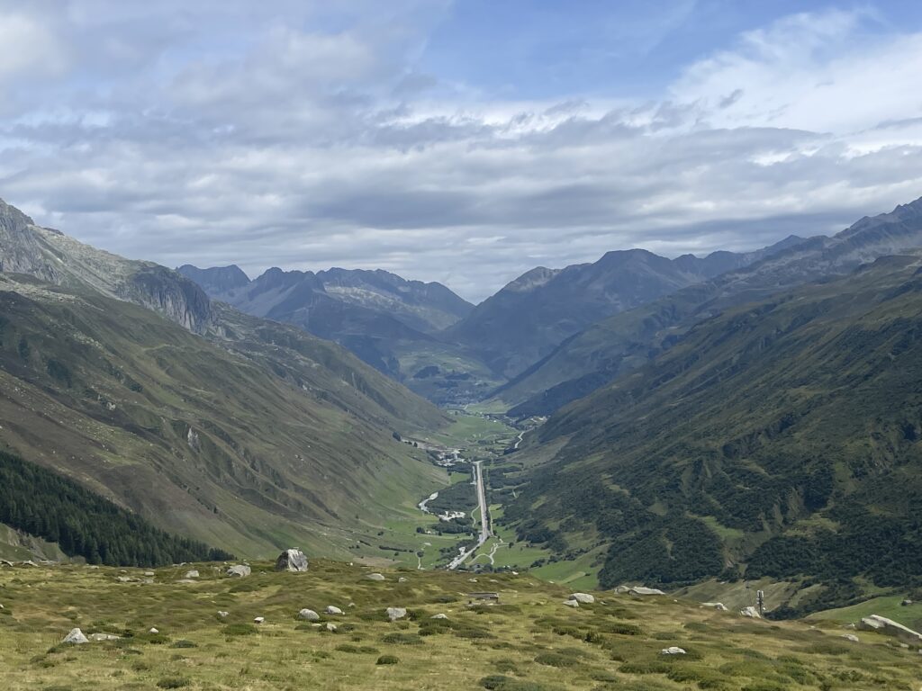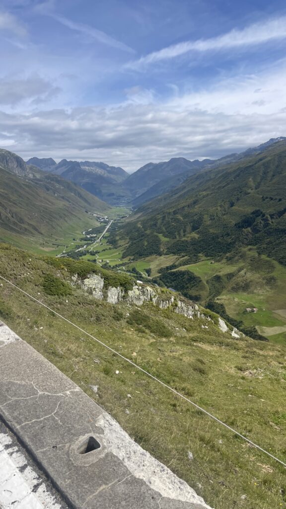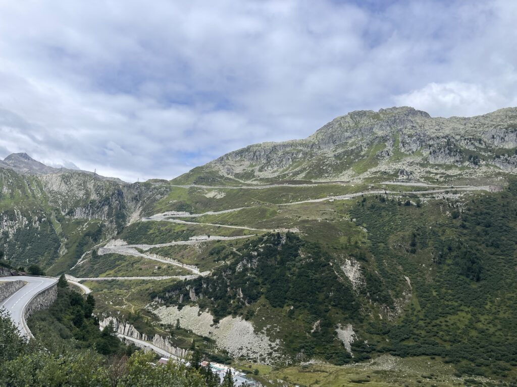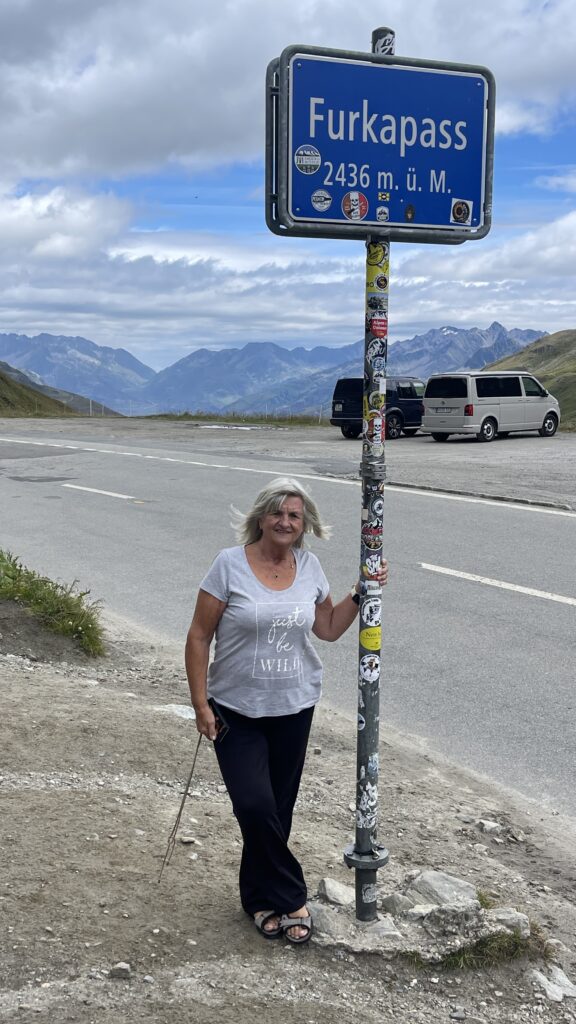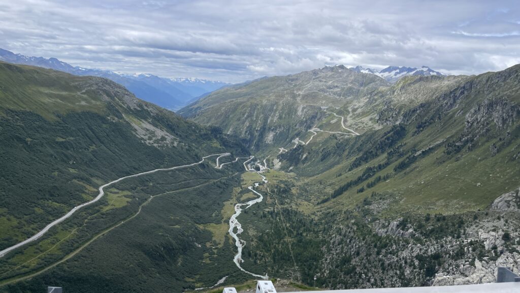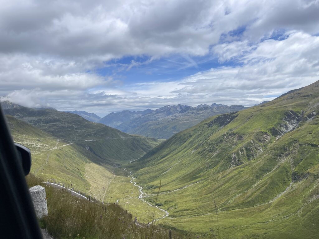 zunächst über Bregenz an Liechtenstein vorbei. Dann über den Oberalppass 2.046 m und runter nach Andermatt. Von dörr ging’s rauf auf den Furkapass auf 2.436 m.