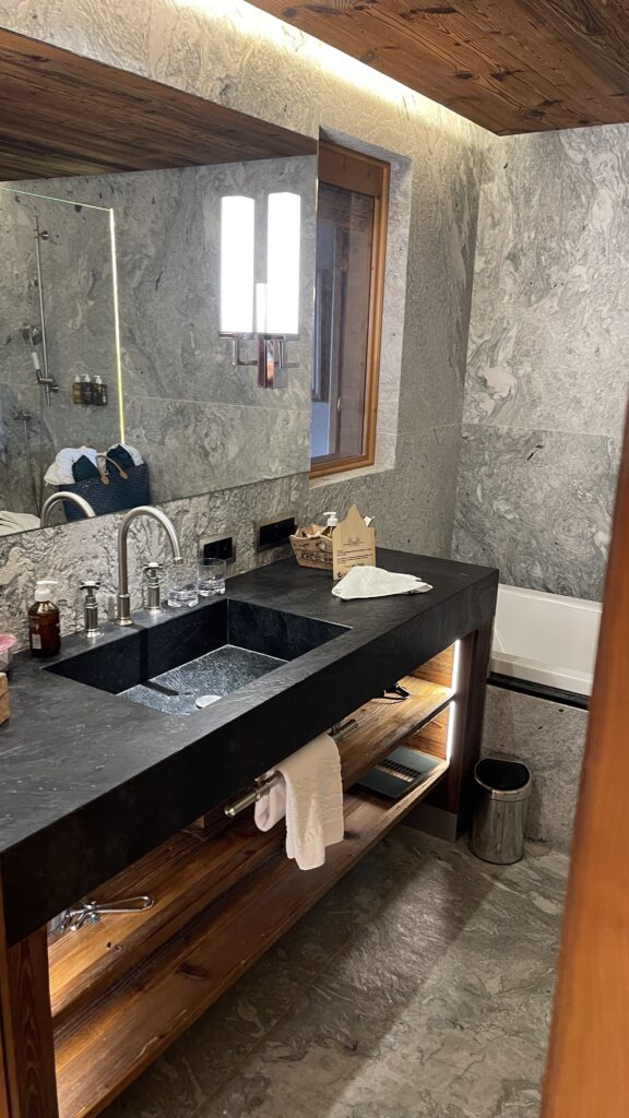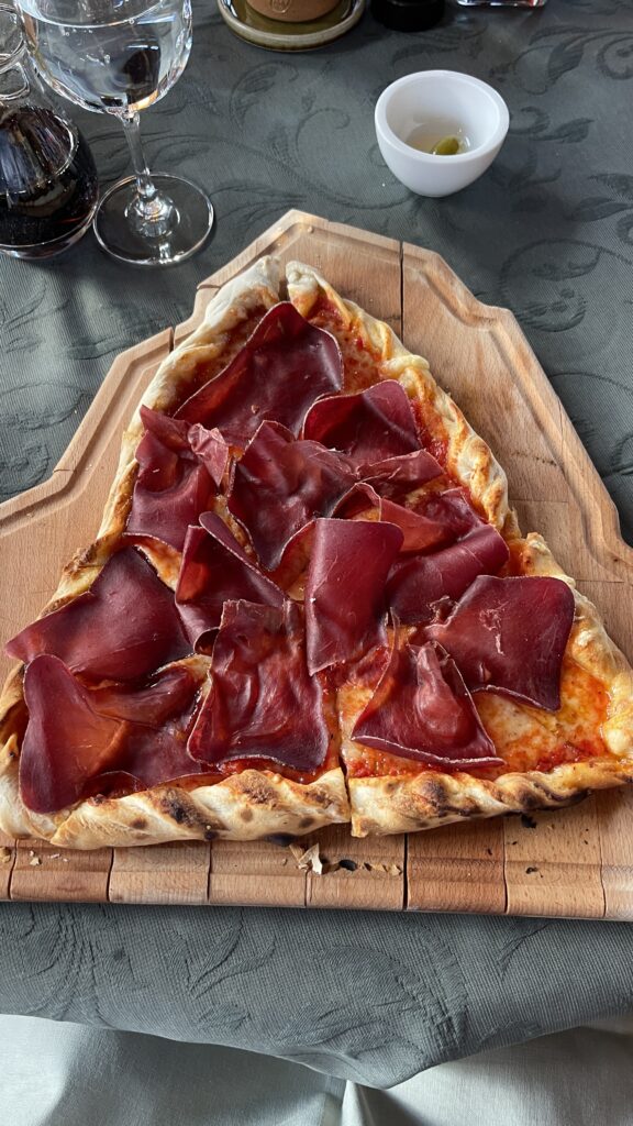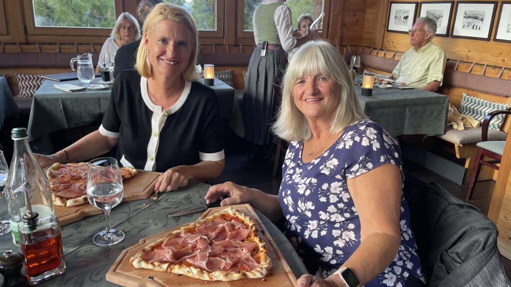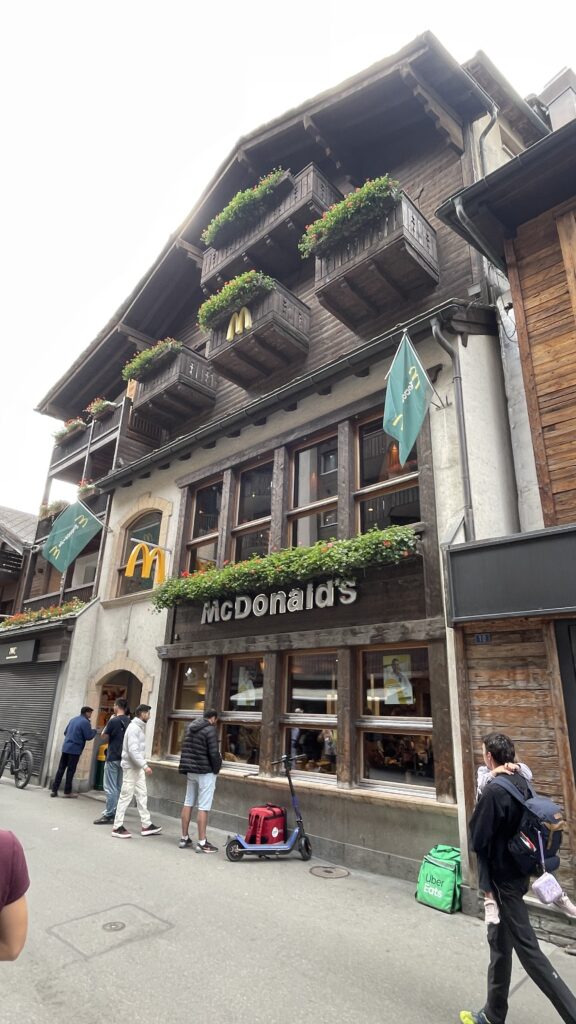 Um 14:45 Uhr waren wir in Täsch beim Parkhaus. Von Dörte ging’s mit dem Taxi die rd 8 km nach Zermatt. In Zermatt dann in ein E Taxi kurz zur Gornergratbahn. Bevor wir im 15:40 mit der Gornergratbahn zu unserem Hotel Riffelalp 2.222m gefahren sind, waren wir noch kurz jausnen in der Fußgängerzone.