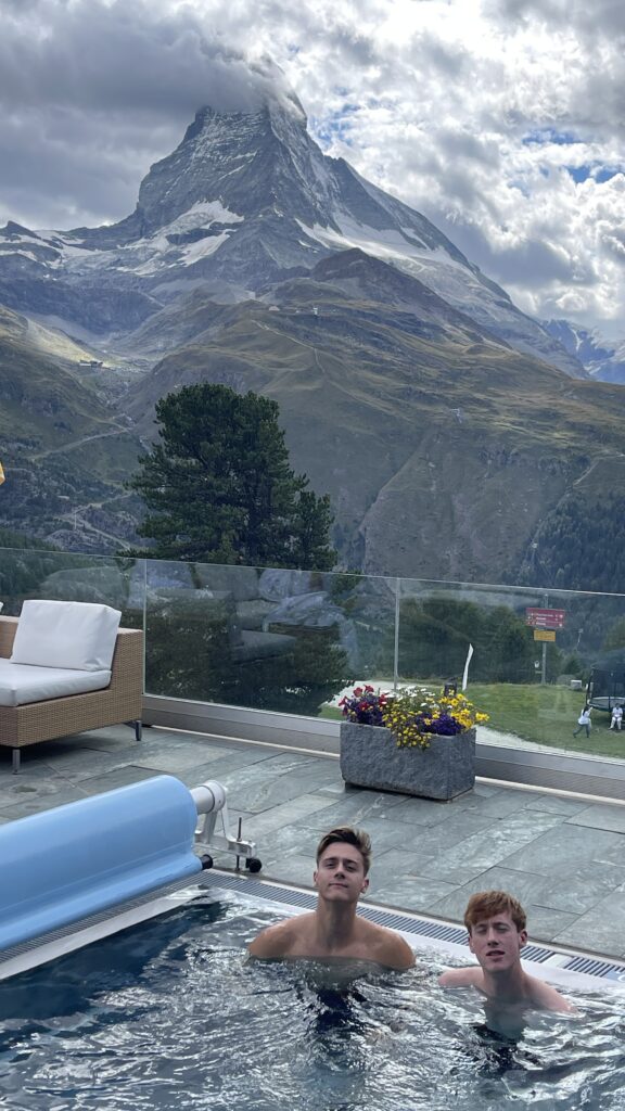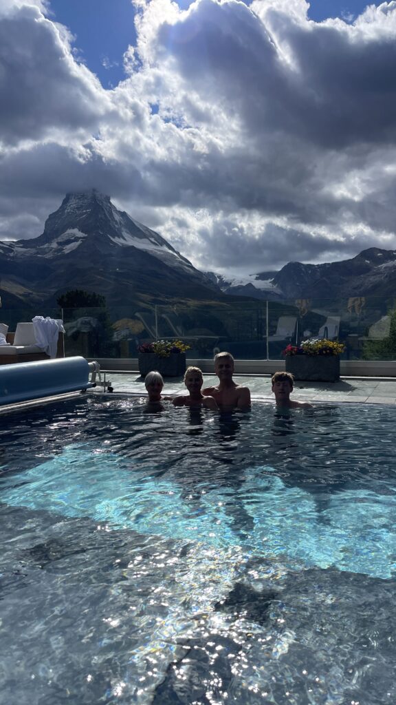 Zunächst sind wir ins Zimmer gegangen und dann zu Fünft in das Outdoorpool, das einen tollen Blick aufs Matterhorn hat. Am Abend gingen wir ins Restaurant vis a vis und dann noch Billard spielen. Wir freuen uns auf die nächste Woche hier. Es wird eine wahnsinnig schöne und tolle Woche werden 😍