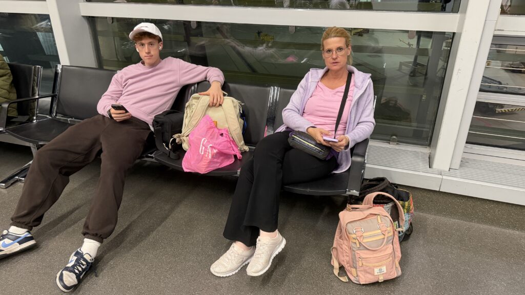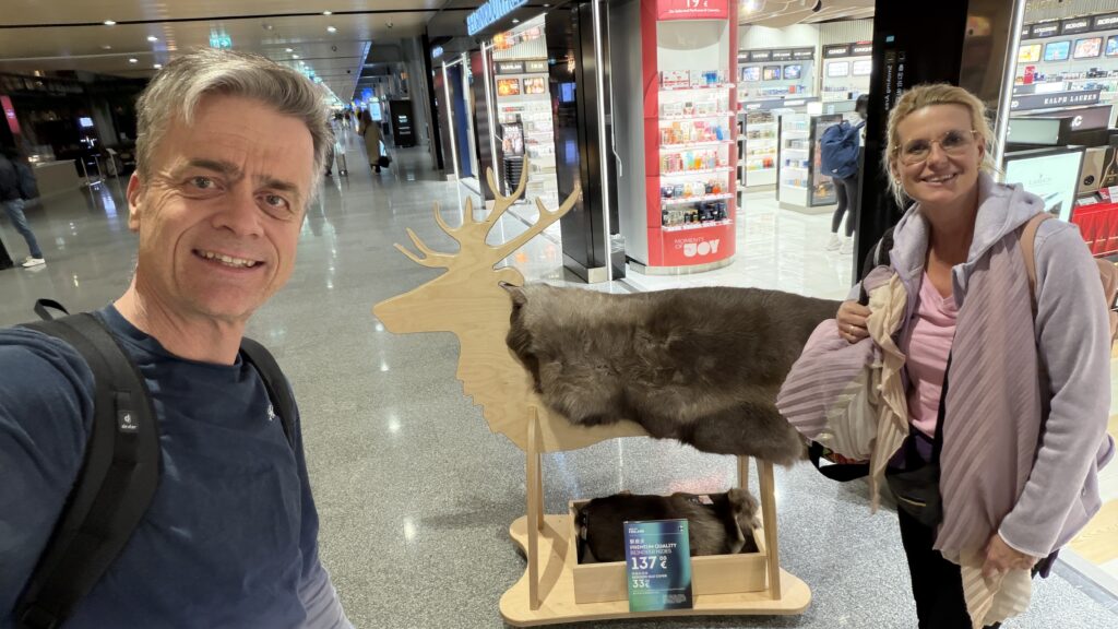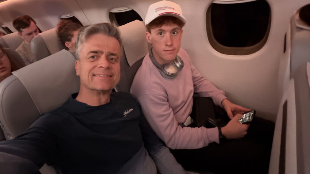 Gestern um 16:00 Uhr sind wir mit dem Taxi zum Flughafen gefahren. Davor hatten wir noch viel zu erledigen. Ich bin mit Ski und Rad um 5:30 Uhrnach Wien zu einem Netzwerktreffen gefahren, hab im Anschluss den EV9 abgeholt dann noch ins Büro. Um 11:15 Uhr dann zu Skinfit wegen Tourenskihardshellhose weiter zu Bergfuchs Wegen Tourenski und den großen Bildschirm abgeholt.