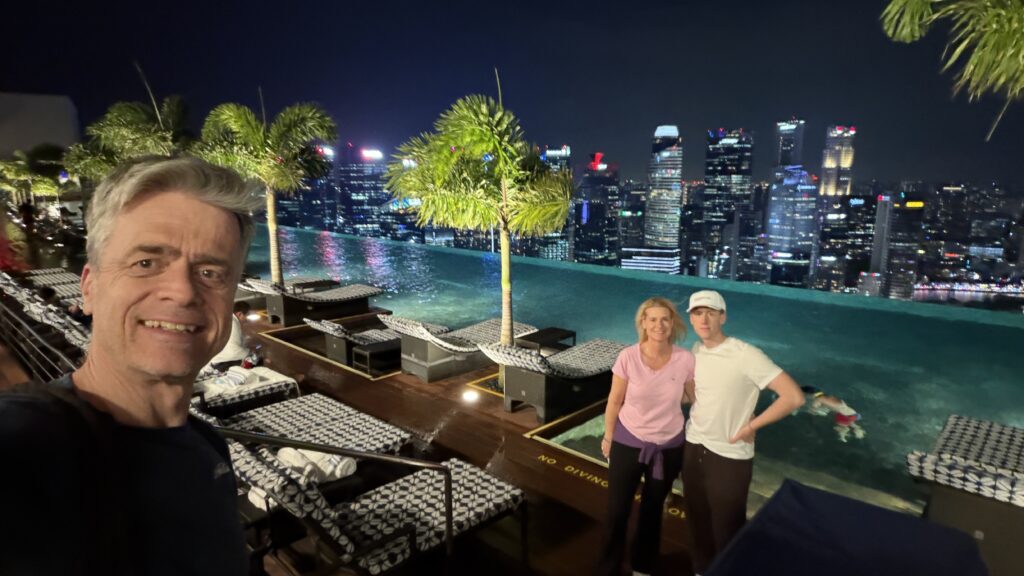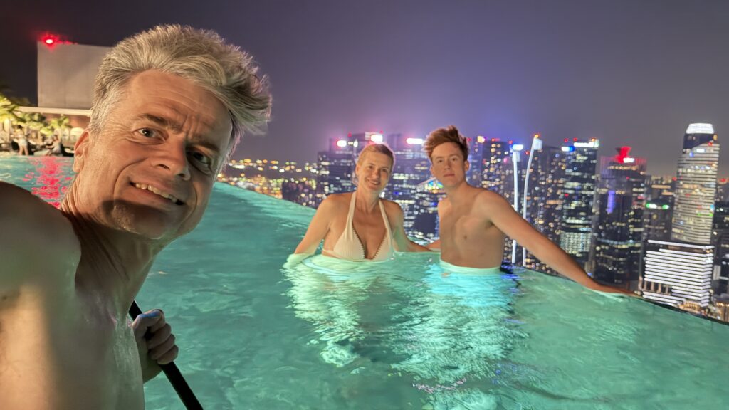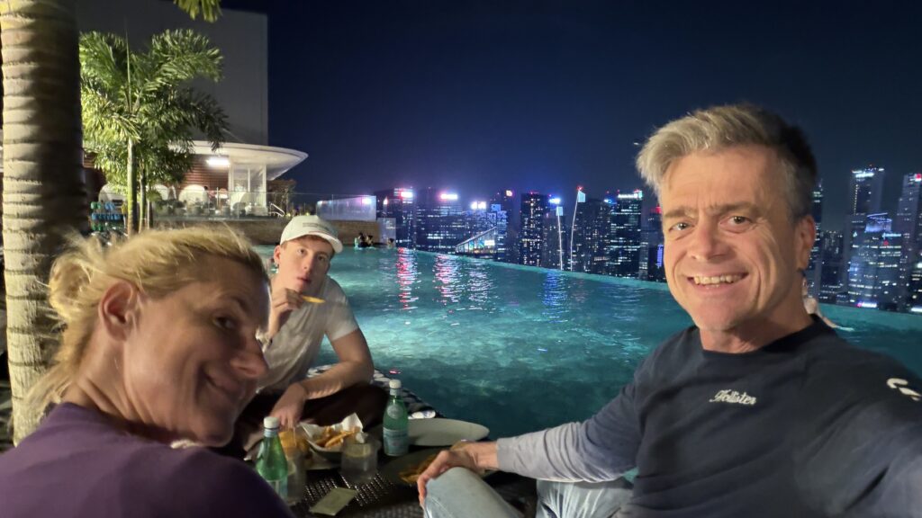 In Singapur sind wir um 19:00 Uhr heute Ortszeit angekommen. Das Einreisen war sehr easy und mit einem Taxi sind wir dann in unser Marina Bay Sands Hotel gefahren. Das bekannteste Hotel in Singapur.